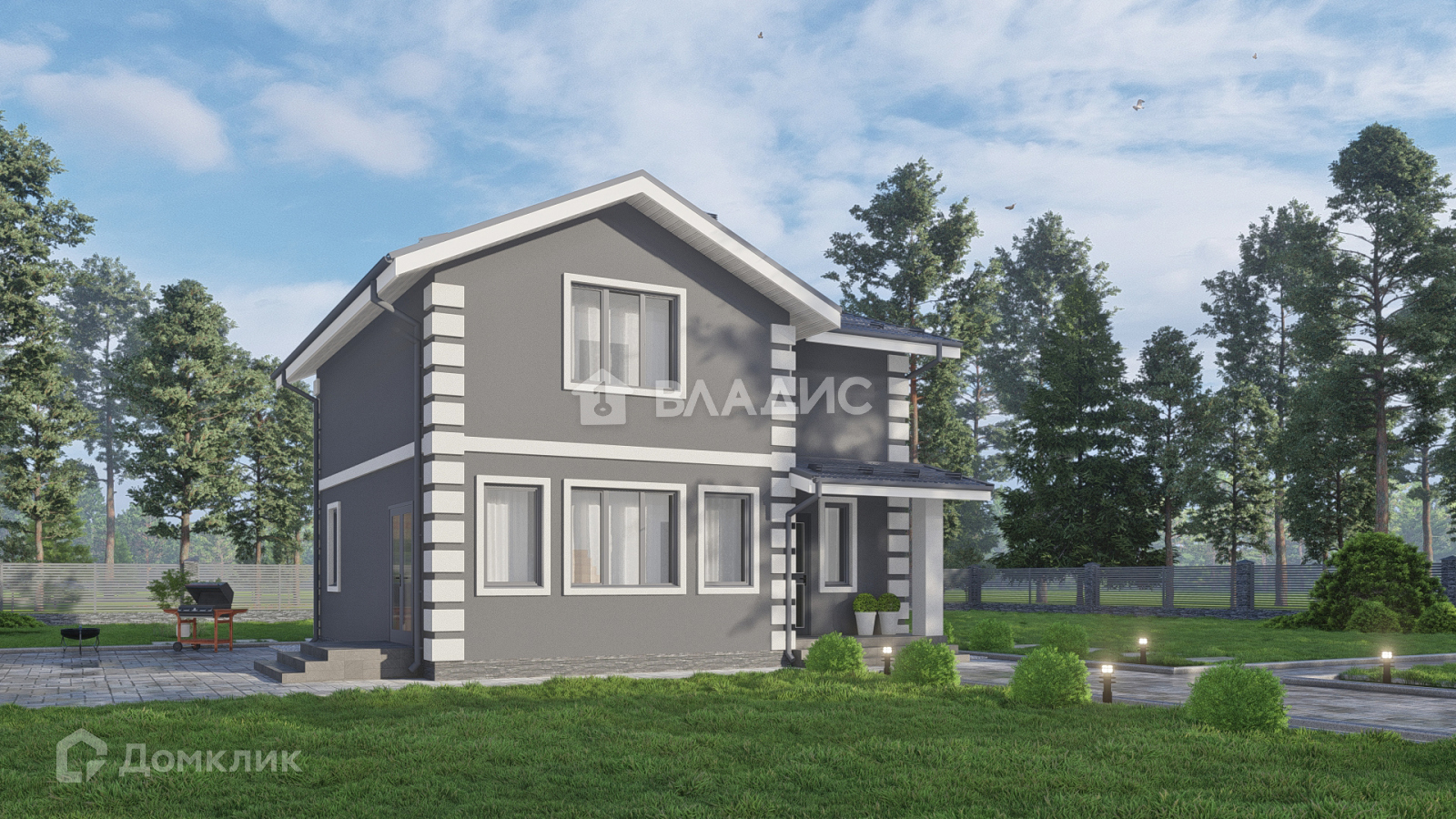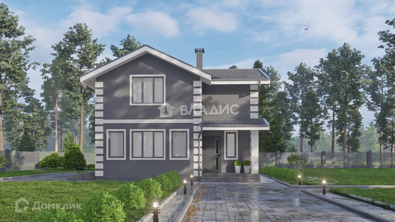 Современный дом в новом коттеджном поселке.