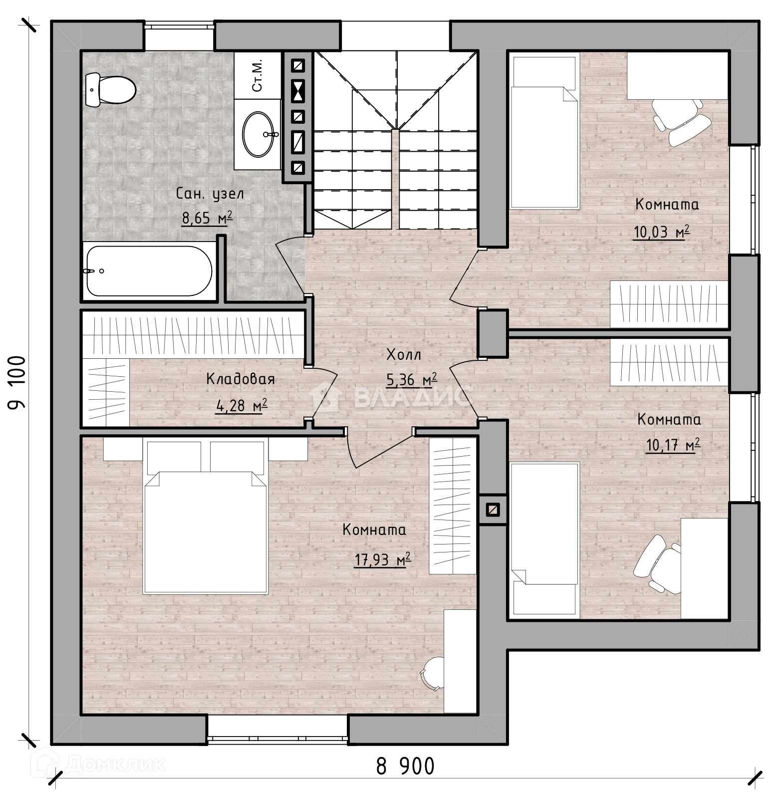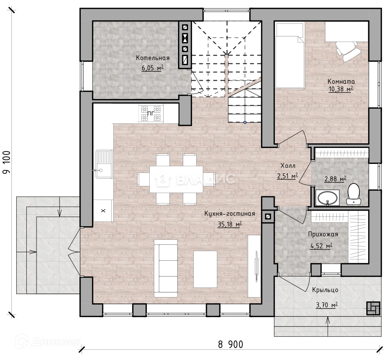 Продуманная планировка с большой кухней-гостиной + 4 спальни.