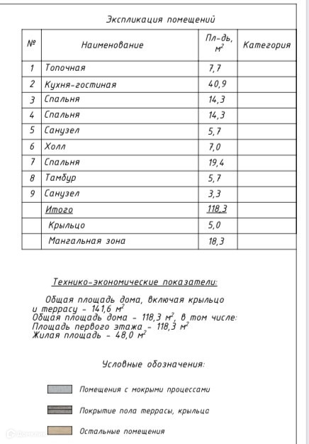 Отличная планировка: огромная кухня-гостиная 40,9 кв. м., 3 просторные спальни (14,3+14,3+19,4) кв. м., два санузла, прихожая, бойлерная и большая терраса 18,3 кв. м. , которую можно застеклить и добавить полезную площадь к дому.