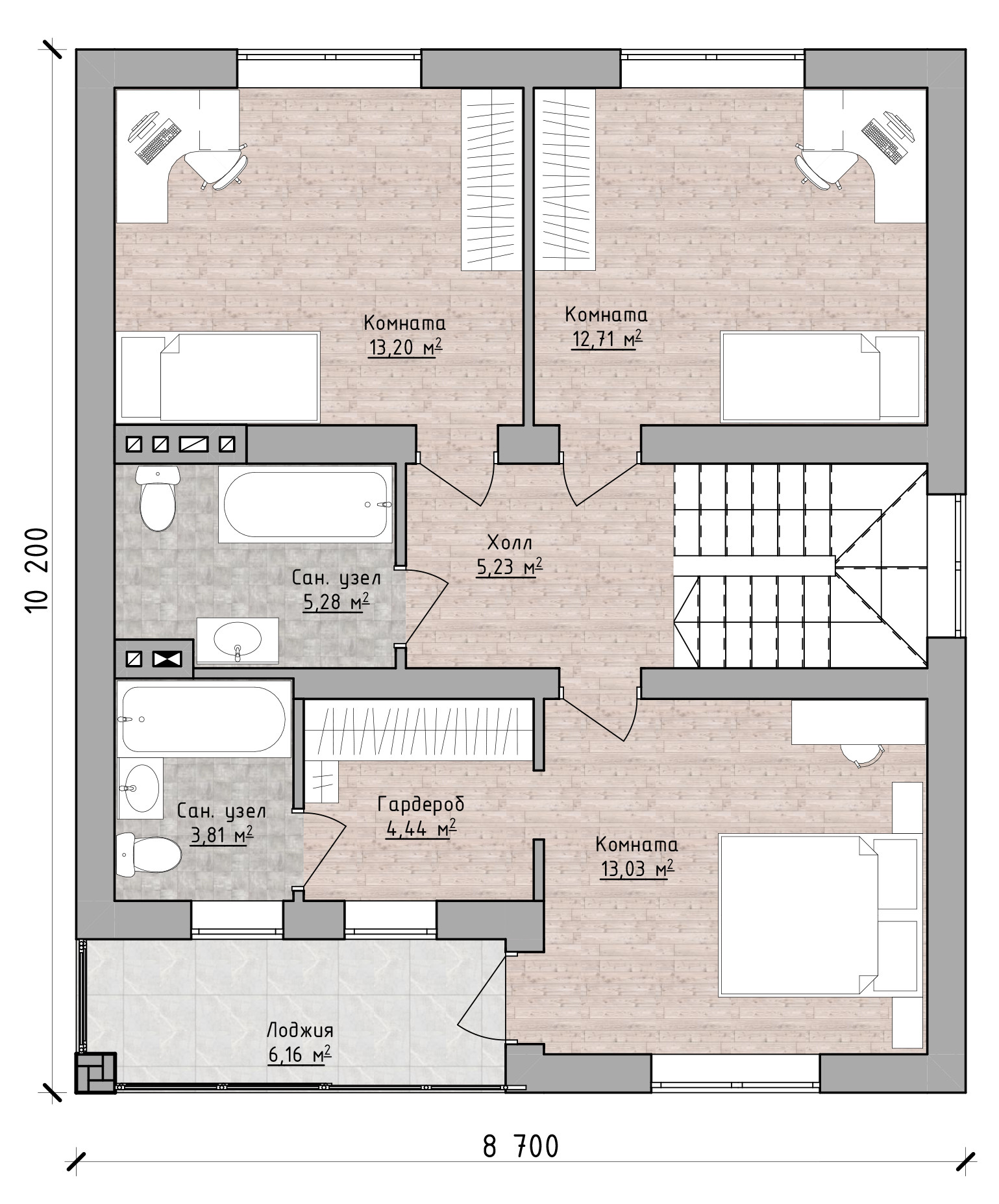 •    Фундамент: монолитная железобетонная плита 250 мм.