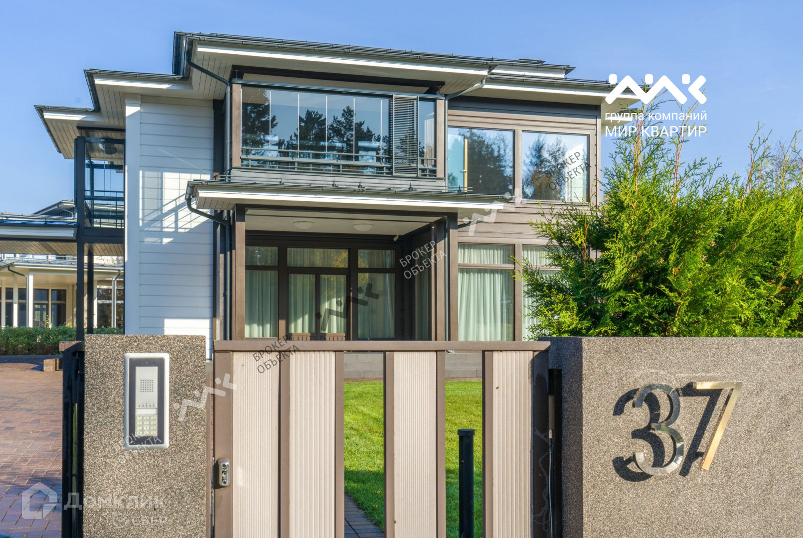 Коммуникации: энергообеспечение 25 кВт, водоснабжение и канализация газоснабжение. Система «Умный дом» (управления светом, шторами (зона гостиной), температурным режимом, вентиляцией, кондиционированием с организацией дистанционного управления инженерными системами через Интернет и посредством телефонной связи).