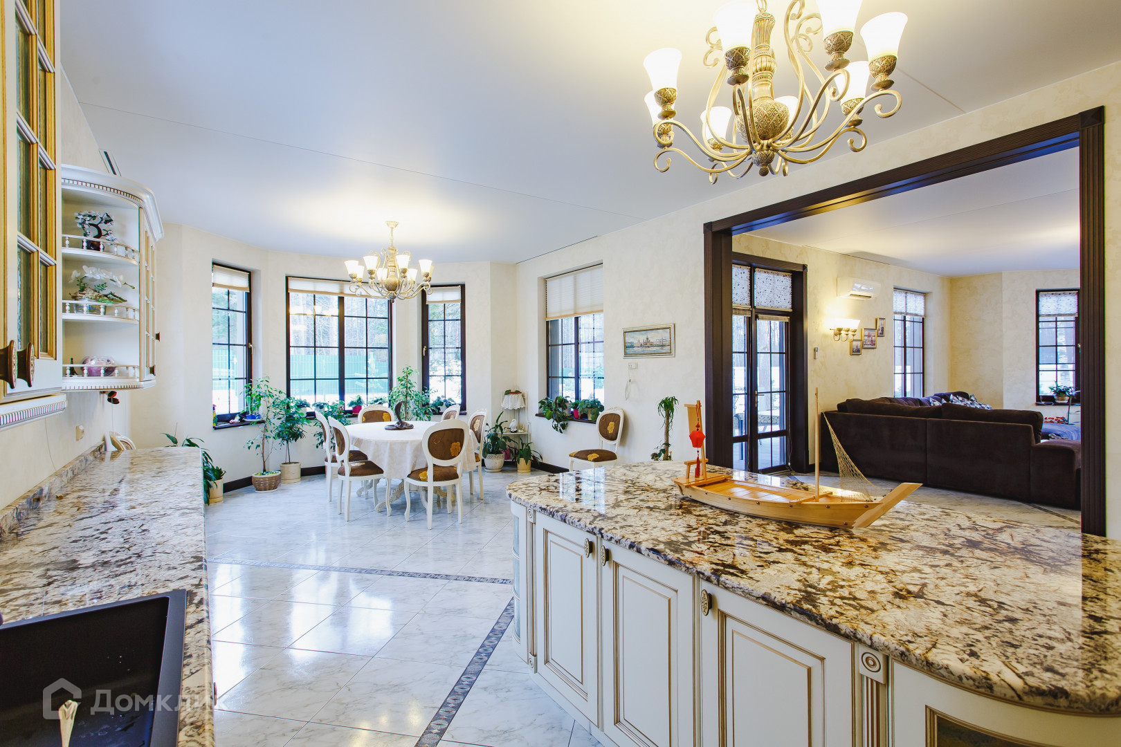 Просторная кухня-столовая и угловая гостиная с выходом на террасу.