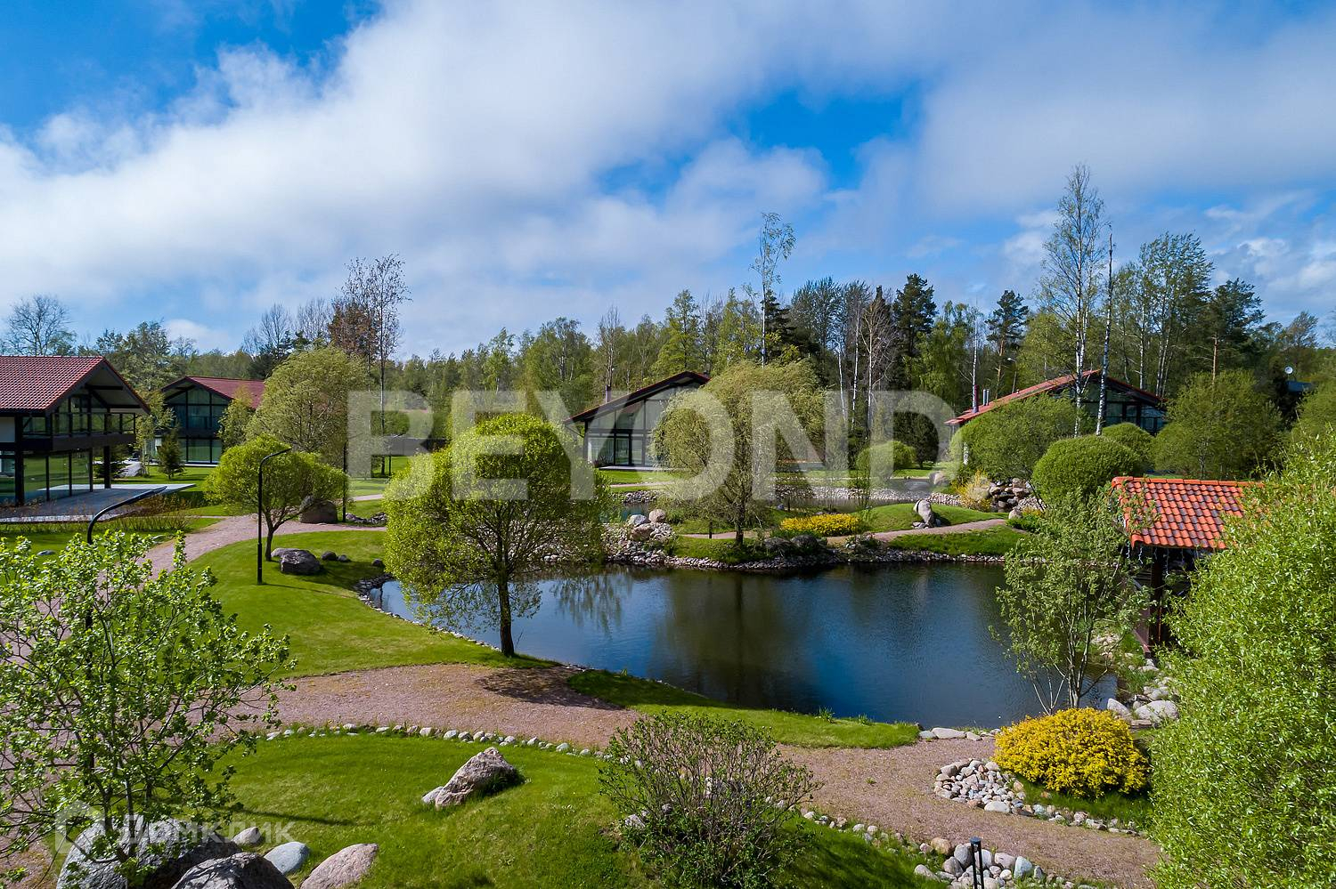 Клубный поселок Sunhill отличает его выверенная концепция загородных резиденций, расположенных на благоустроенной территории без высоких заборов, ограничивающих земельный участок. Благодаря грамотно стилизованному ландшафту из дома и участка открываются красивейшие виды, а возможность высадить по границе живую изгородь создаст приватность.