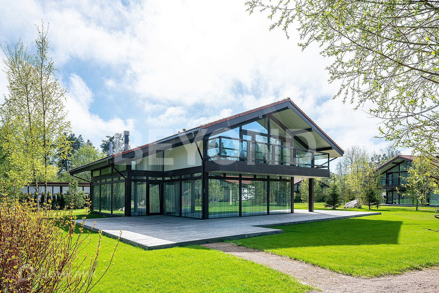 Все резиденции выполнены в единой стилистике и построены по немецкой технологии домостроения «Фахверк» с применением качественных и долговечных материалов. В доме сделан новый ремонт, в котором никогда не проживали. На первом этаже расположена просторная светлая гостиная со вторым светом и панорамными окнами, зона столовой и кухни, гостевой санузел и хозяйственная зона при кухне, на втором этаже расположена мастер спальня с собственной ванной и гардеробной комнатой, а также две дополнительные спальни и ванная комната. В цокольном этаже расположена зона отдыха, СПА-зона, постирочная и кинотеатр, который при необходимости можно переоборудовать в спортивный зал.