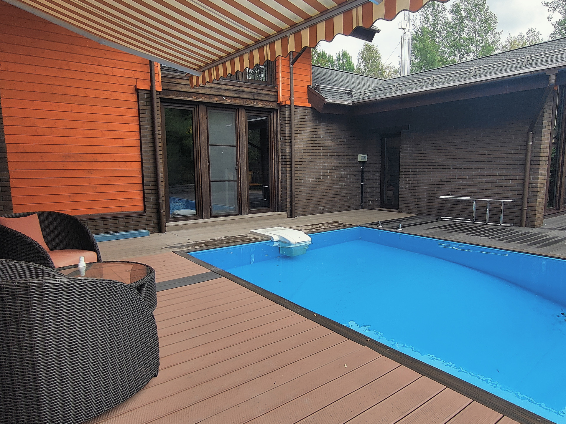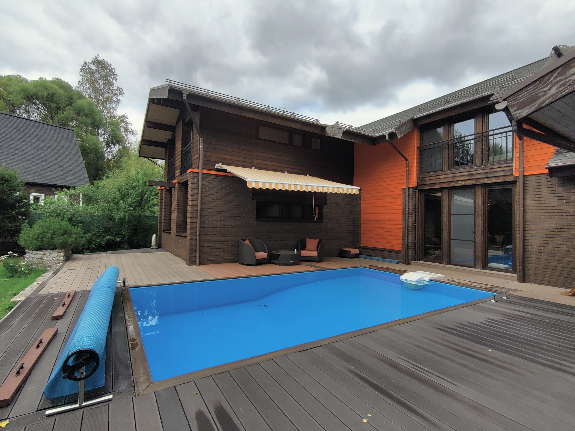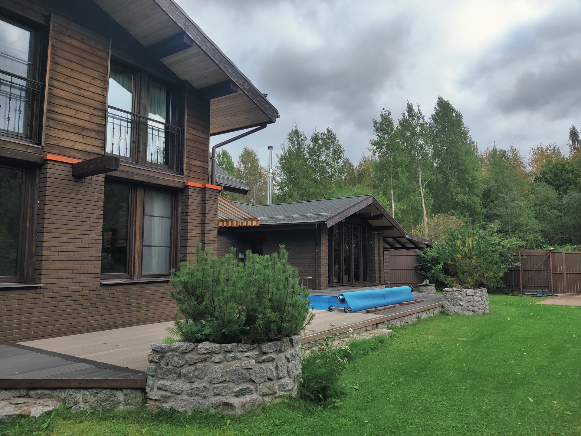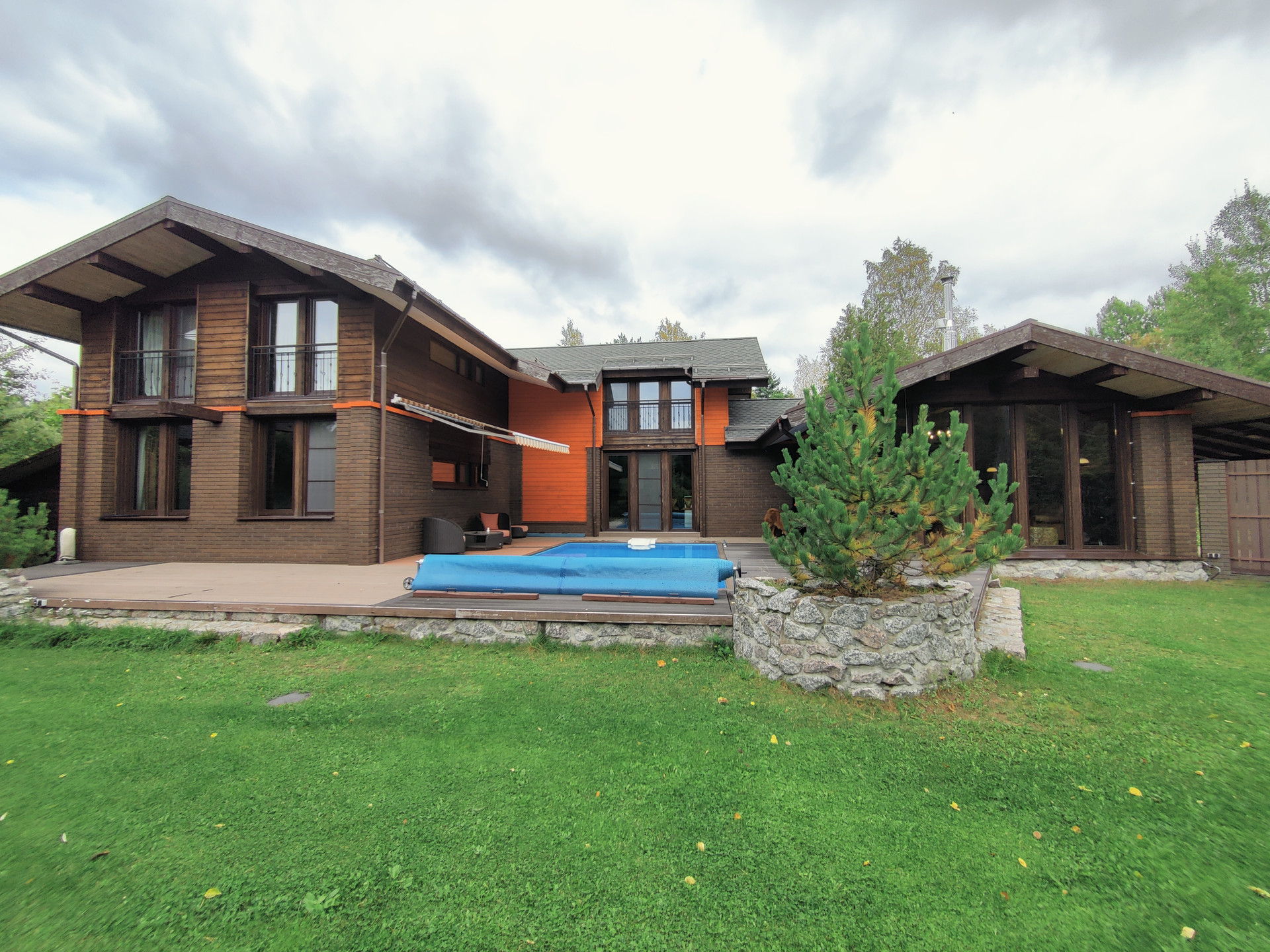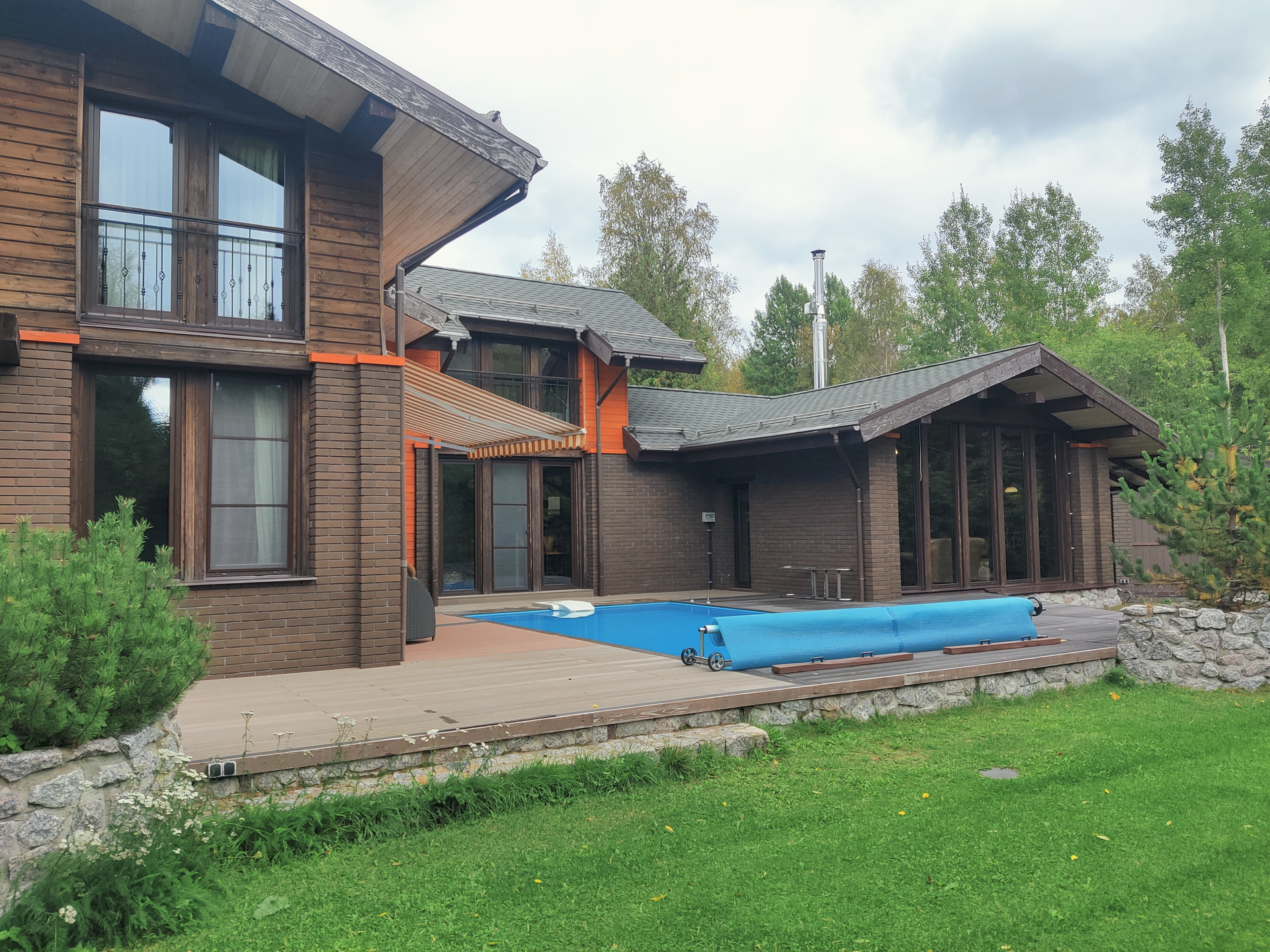 Стильный, современный коттедж, с большой террасой, открытым бассейном, расположенный рядом с лесом, понравится тому клиенту, который выбирает загородную жизнь в комфортных условиях.
