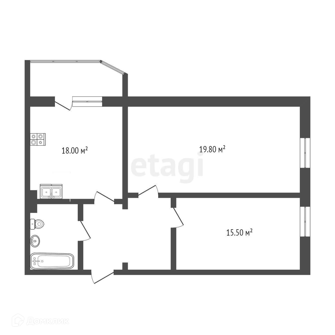 Общая площадь 59.8 м2