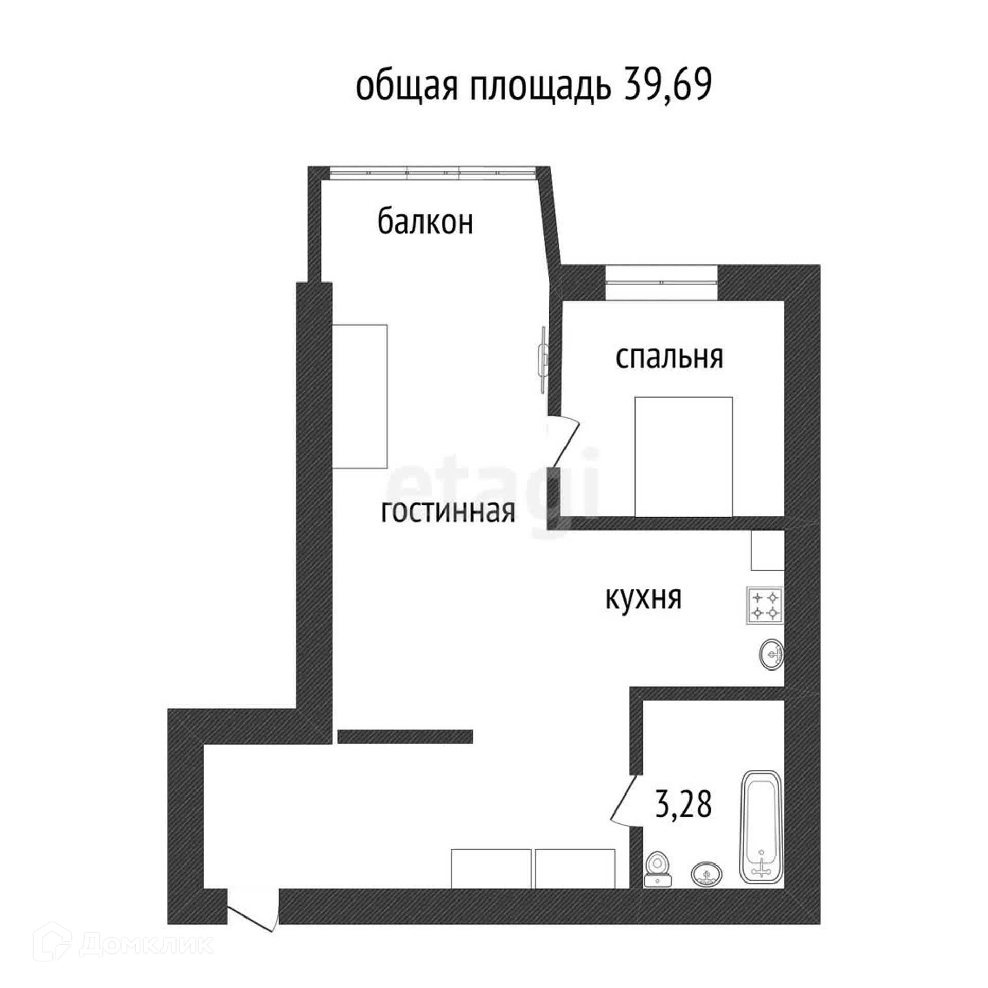 Общая площадь 39.4 м2
