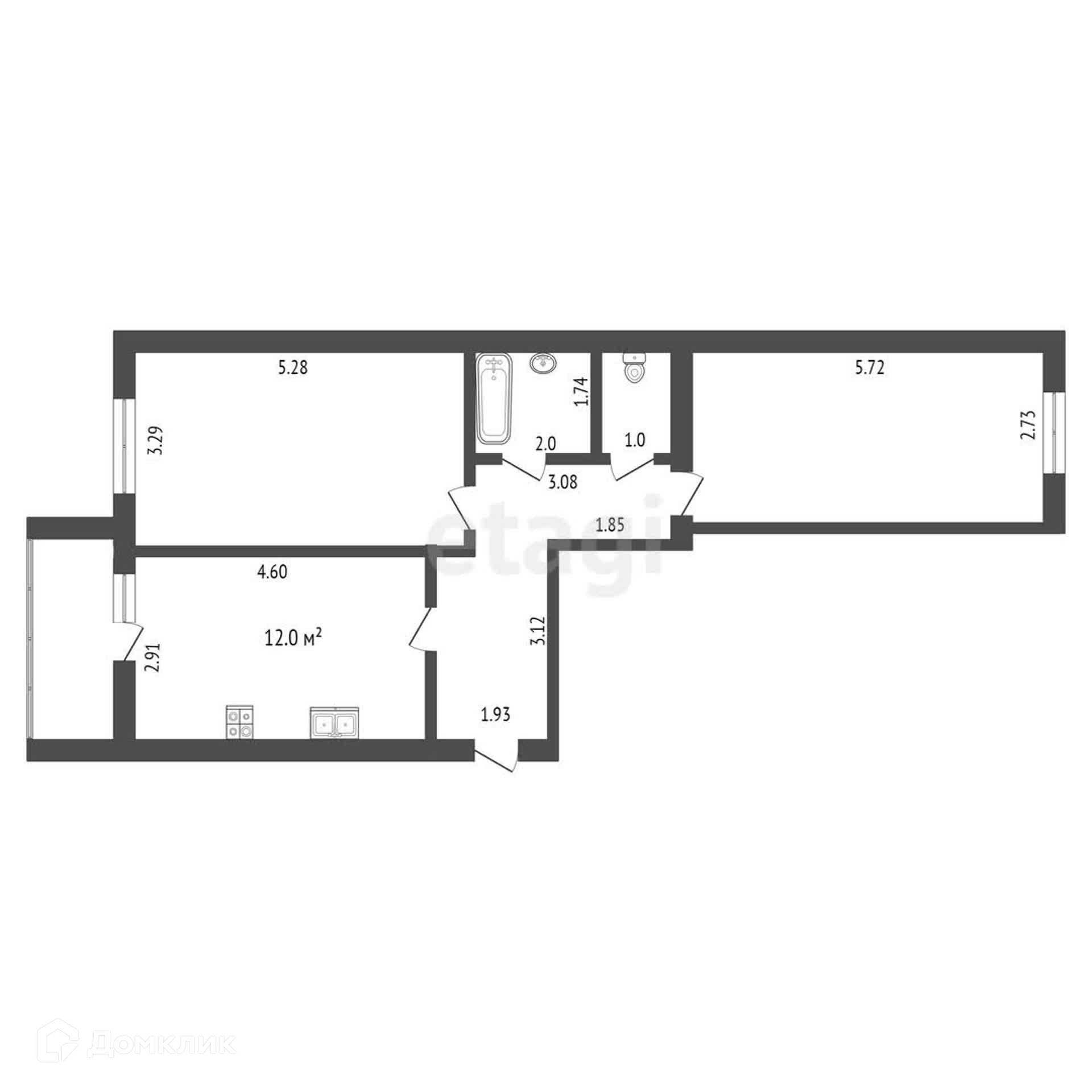 Общая площадь 61.7 м2