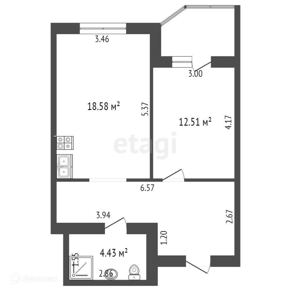 Общая площадь 48.3 м2
