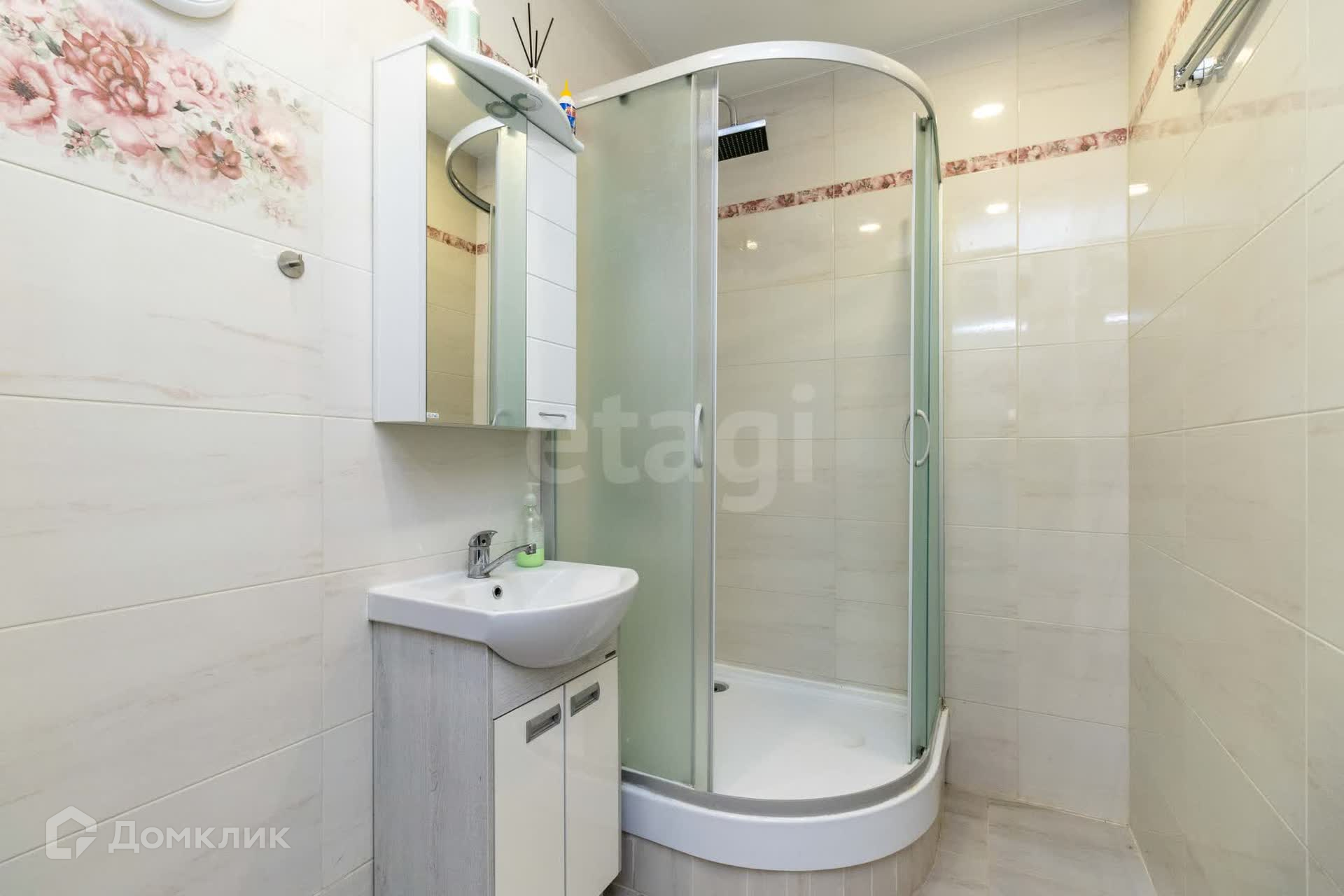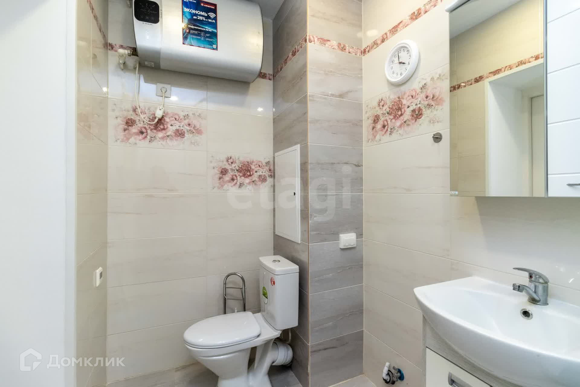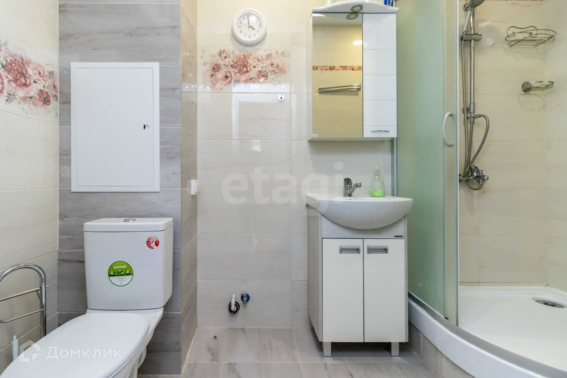 Санузел: плитка, фильтр на холодную воду, бойлер и душевая кабинка размером 100*100 см с тёплым полом — всё для вашего удобства!