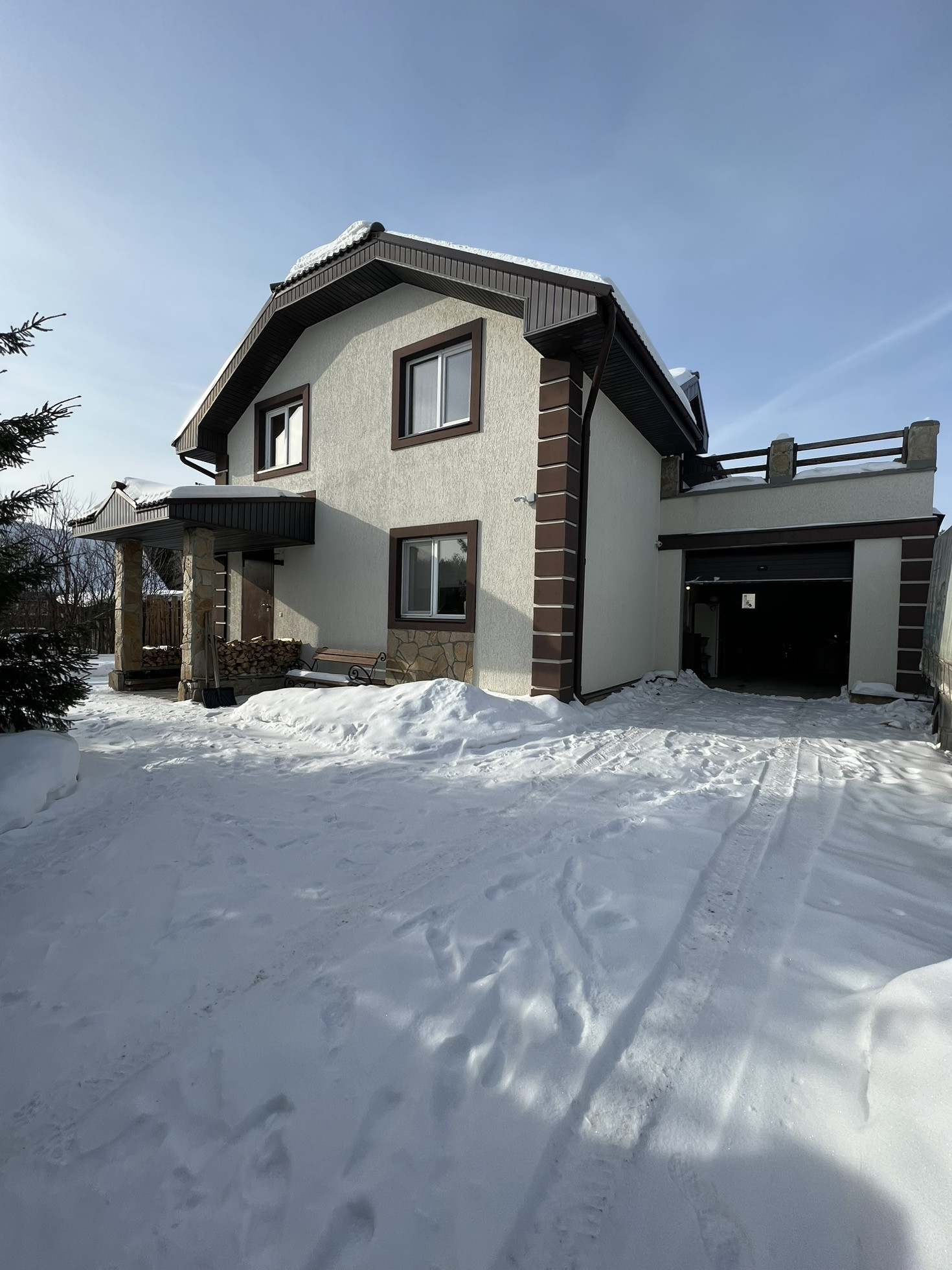 Кровля – Утепленная 200 мм с покрытием полимерно-песчаной черепицей , Окна и двери хорошие 5ти камерные ПВХ конструкции Деккенинг, с возможностью выхода со второго этажа на эксплуатированную кровлю гаража!