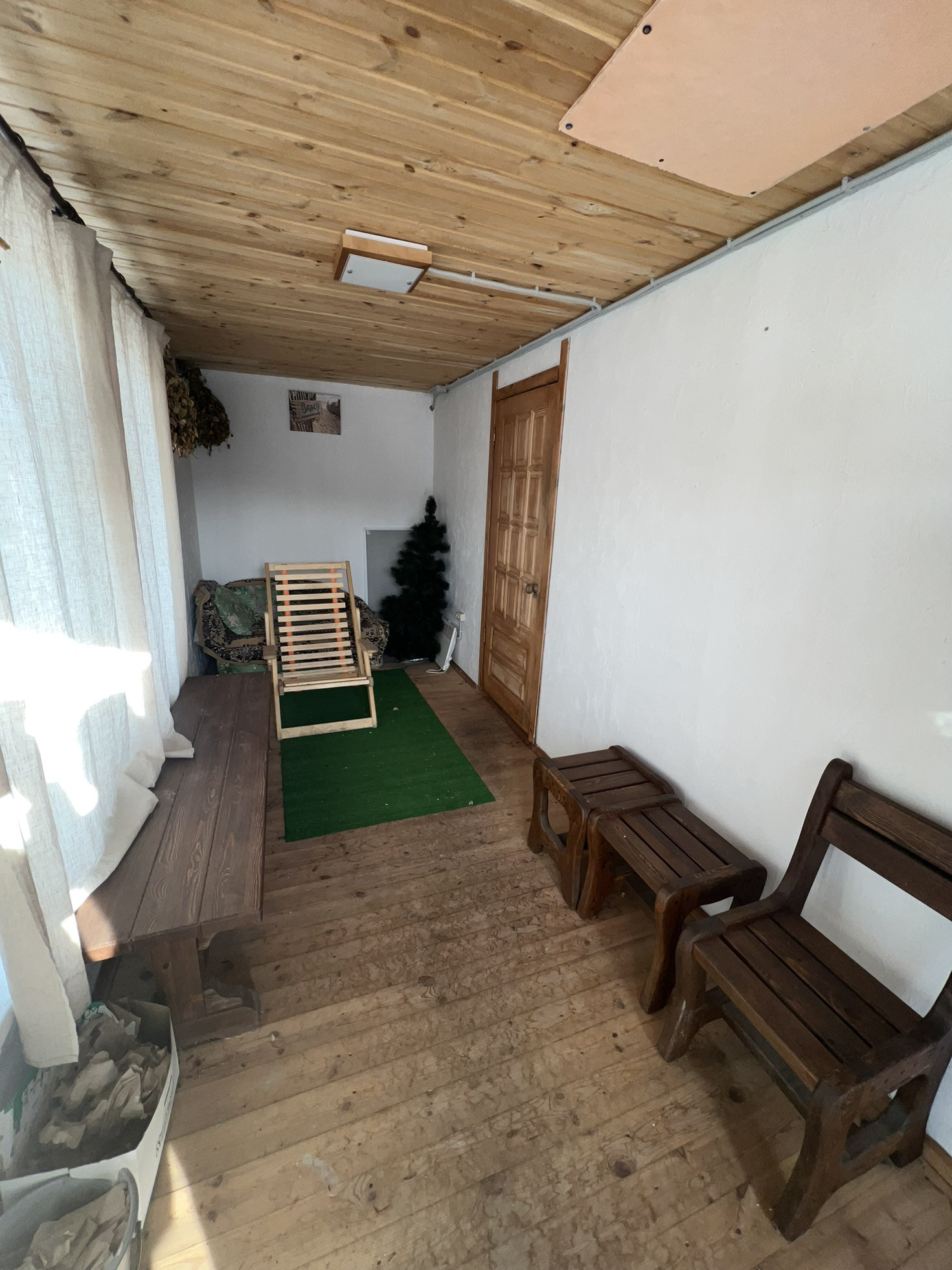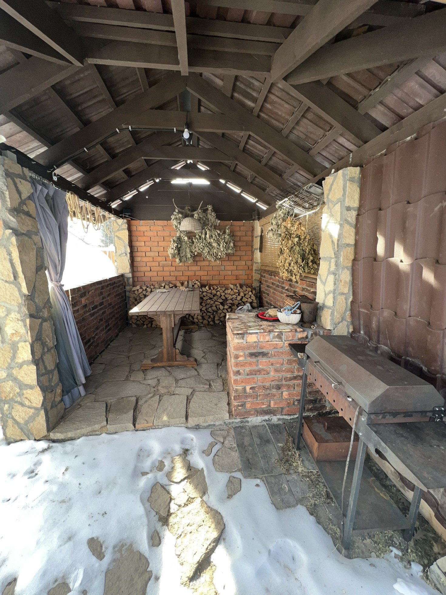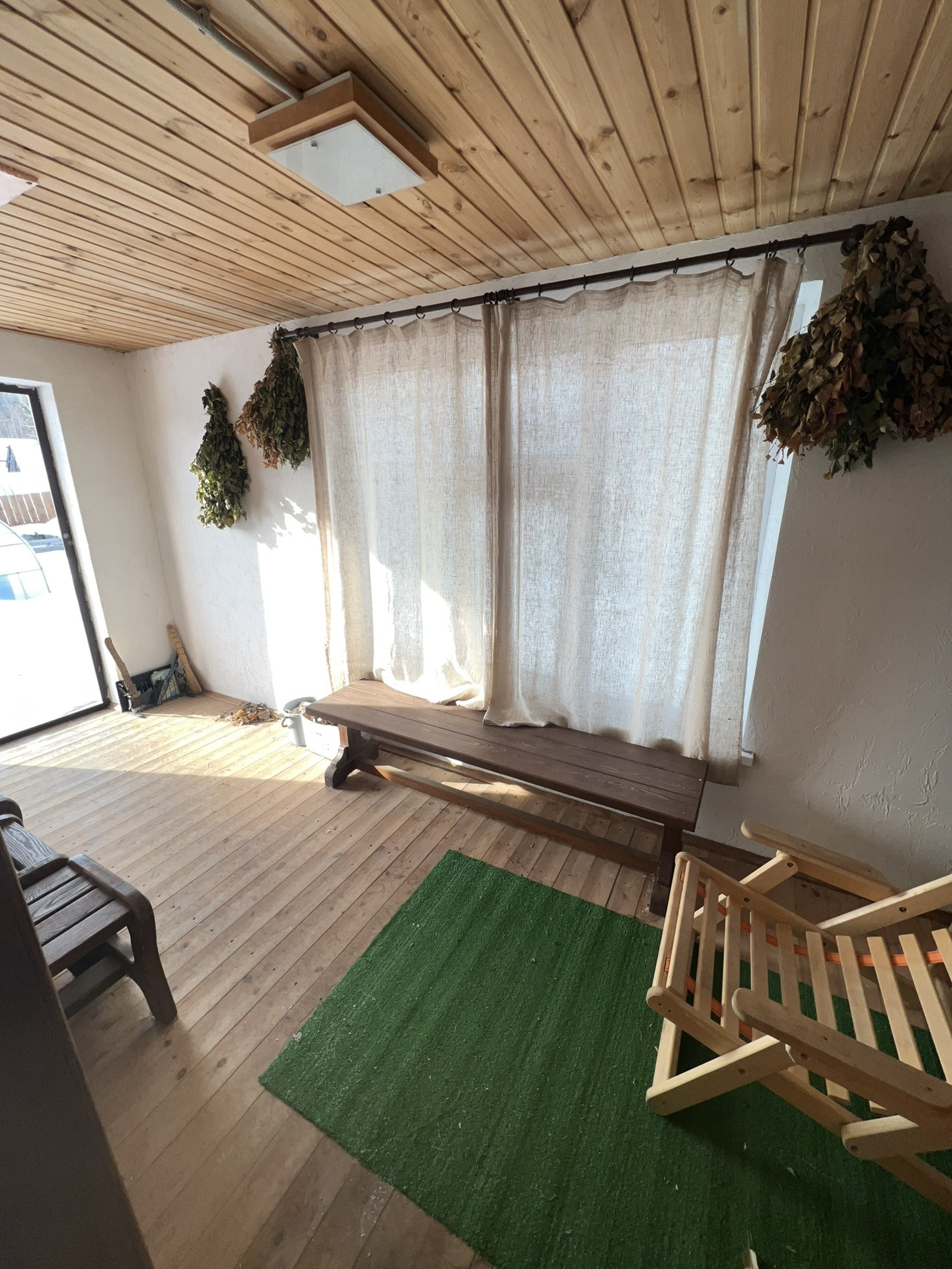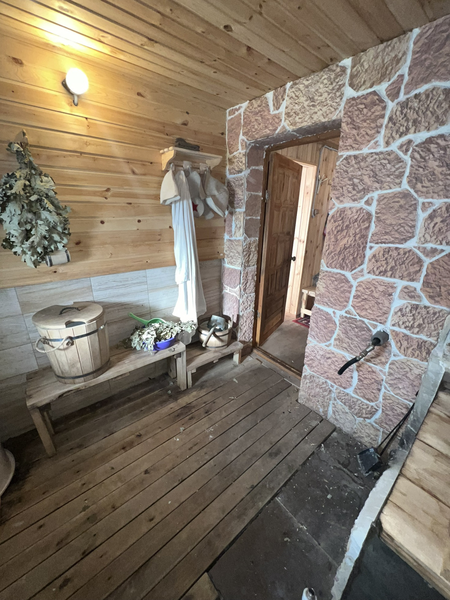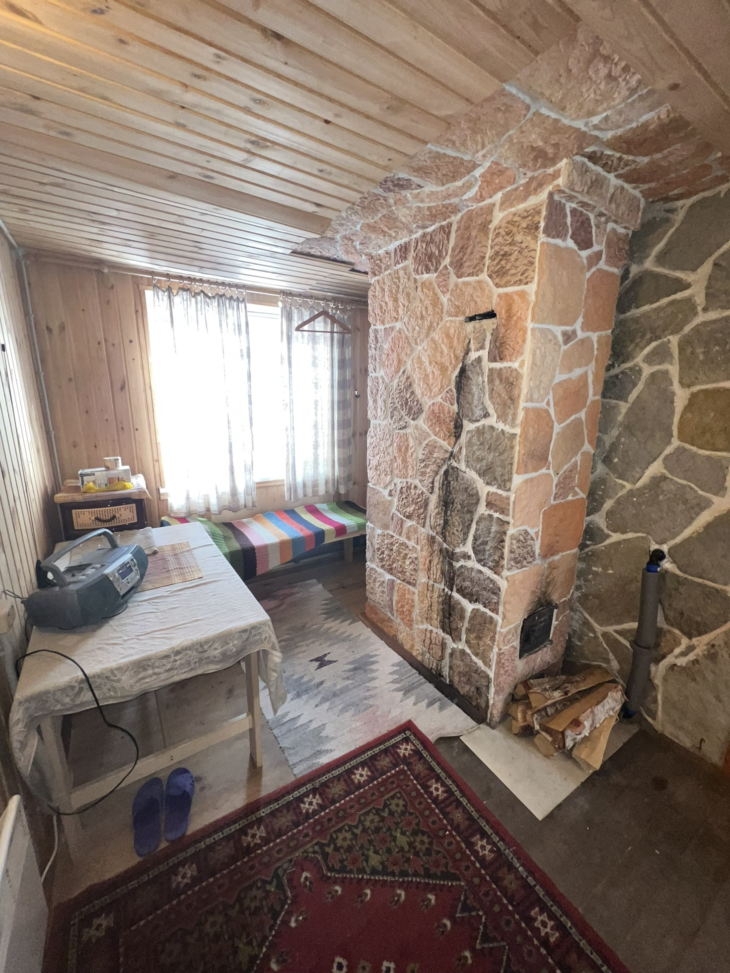 Отопление: Дровяная кирпичная печь, электрические финские конвекторы