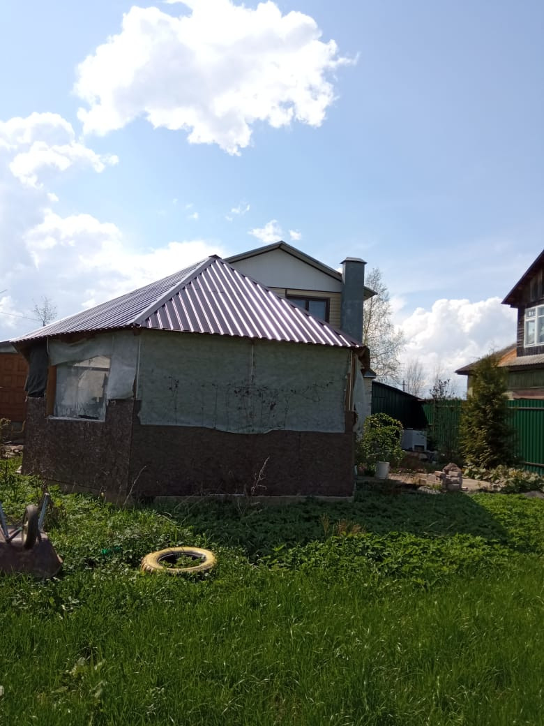 На участке 10 соток плодовые деревья, хоз.постройки и беседка 40квм. Металлический забор по всему периметру. Крытый двор.
