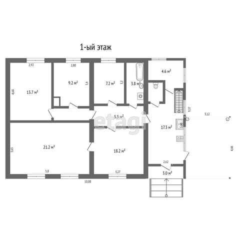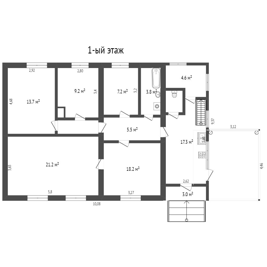 Первый этаж жилой - 4 комнаты, 2 коридора, кухня, ванная, котельная, туалет и веранда.