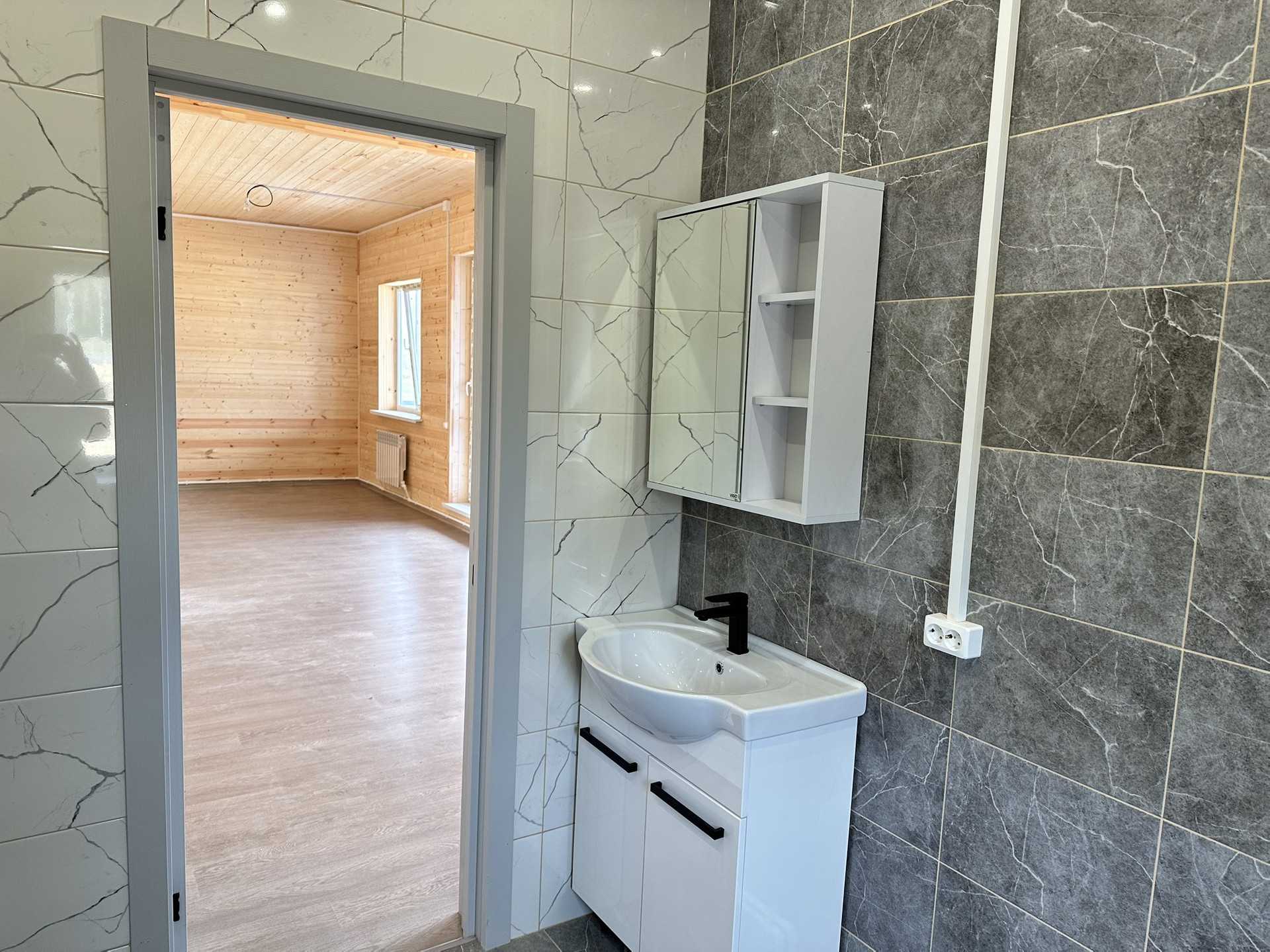 Новый дом из бруса! 120 м2 на 6 стоках земли. Дом со всеми заведенными коммутациями (свет, вода, отопление, канализация). Утеплен по зимнему варианту и предназначен для круглогодичного проживания. В доме 3 изолированные спальни, кухня совмещенная с гостиной, ванная комната , прихожая и топочная. Большие окна в гостиной придают масштаб и много солнечного света. Дом обшит имитацией бруса, обработан и выкрашен снаружи. Крыша металлочерепица Grand Line со снегозадержателями. Фундамент ленточный армированный. Окна двухкамерные (отворотно- поворотный механизм). В ванной комнате плитка и установлена сантехника.