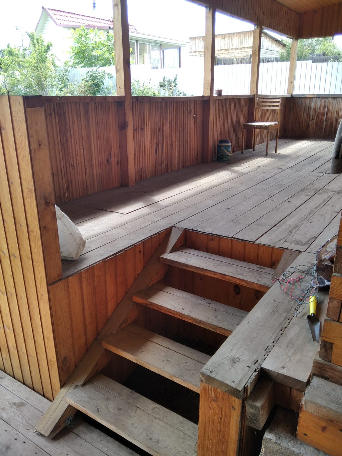 Веранда обшита вагонкой.