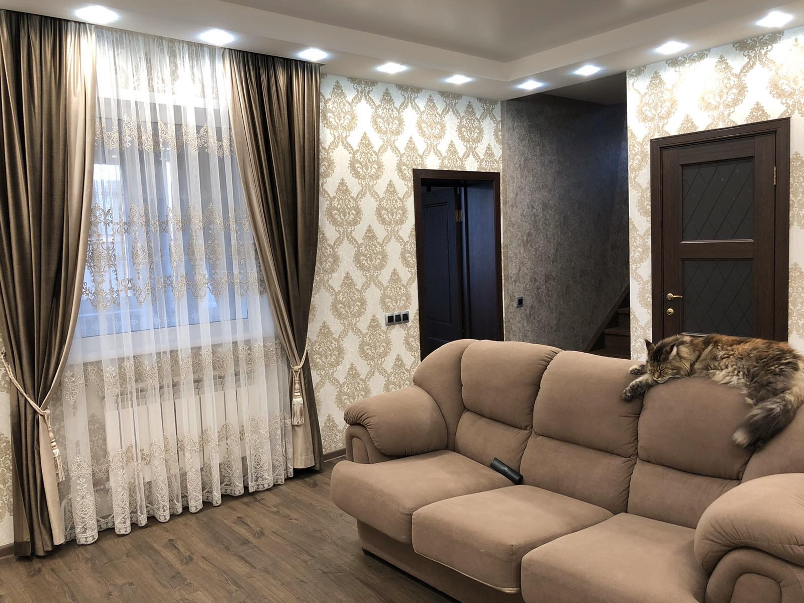 Отделка дома сайдинг. Ремонт сделан  два года назад. Дорогие шторы. Все делалось для себя.Продается вместе с мебелью и техникой ( дорогой комплект одного производителя из посудомоечной машины, духового шкафа, встроенной микроволновой печи, вытяжки, варочной поверхности, холодильник. Стиральная машинка, три телевизора, домашний кинотеатр). Реальному покупателю торг.