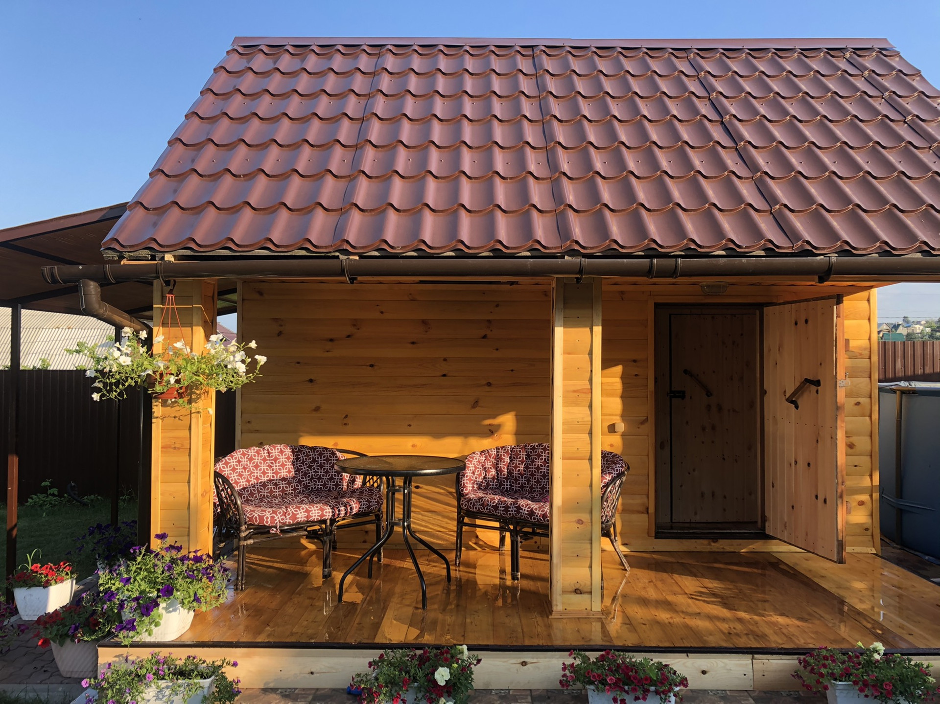 - Бассейн каркасный рядом с баней на оборудованном участке