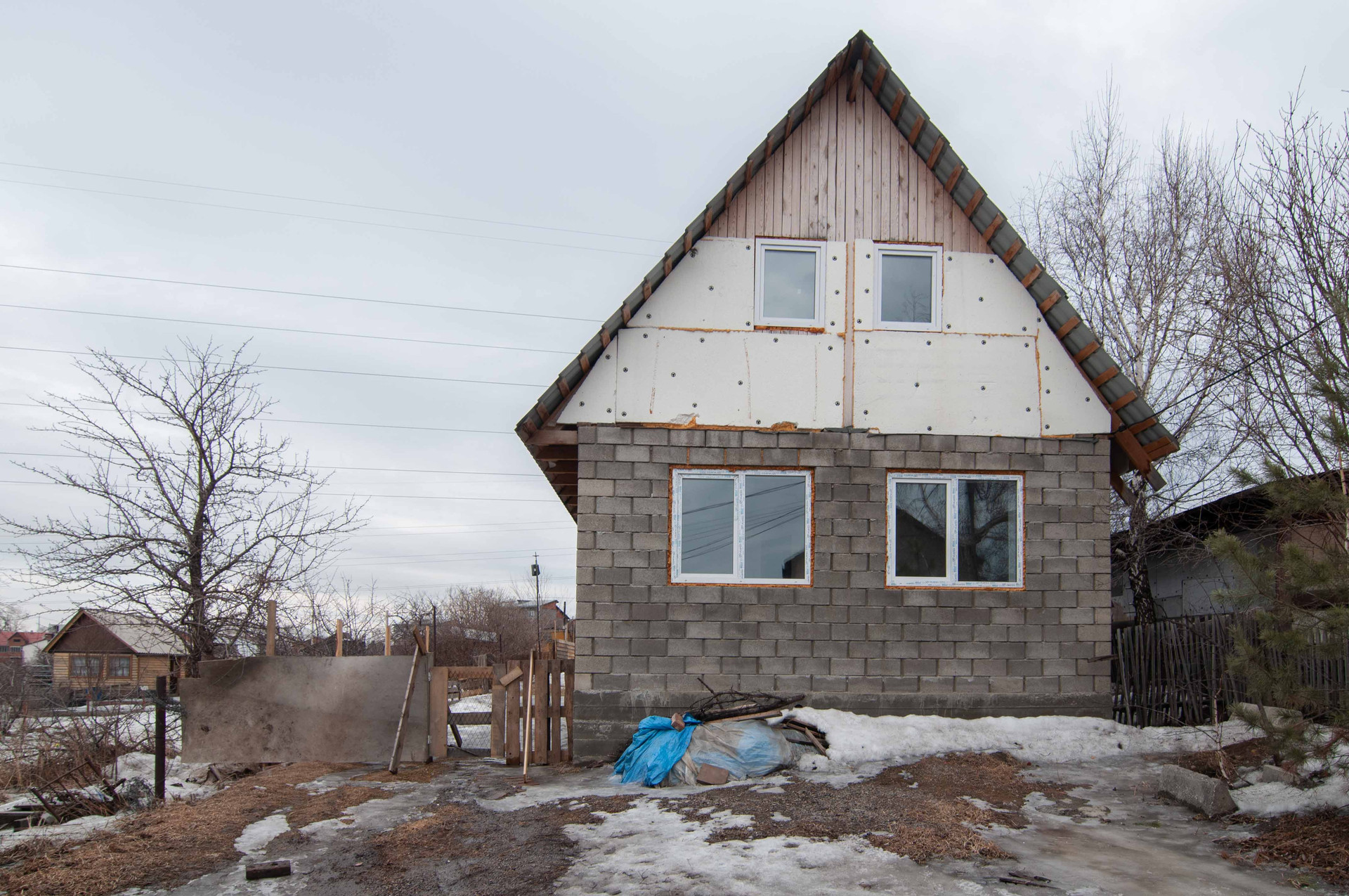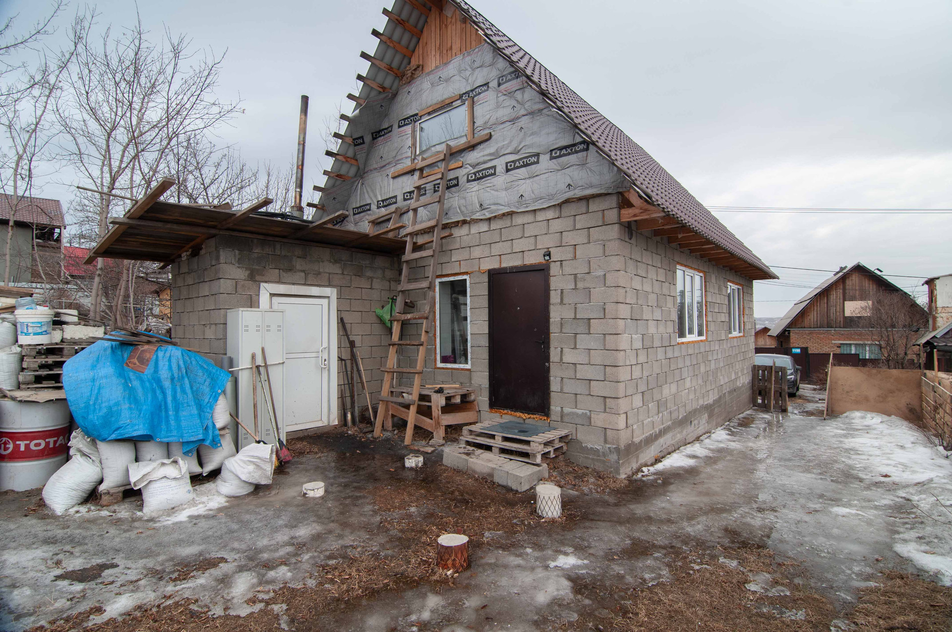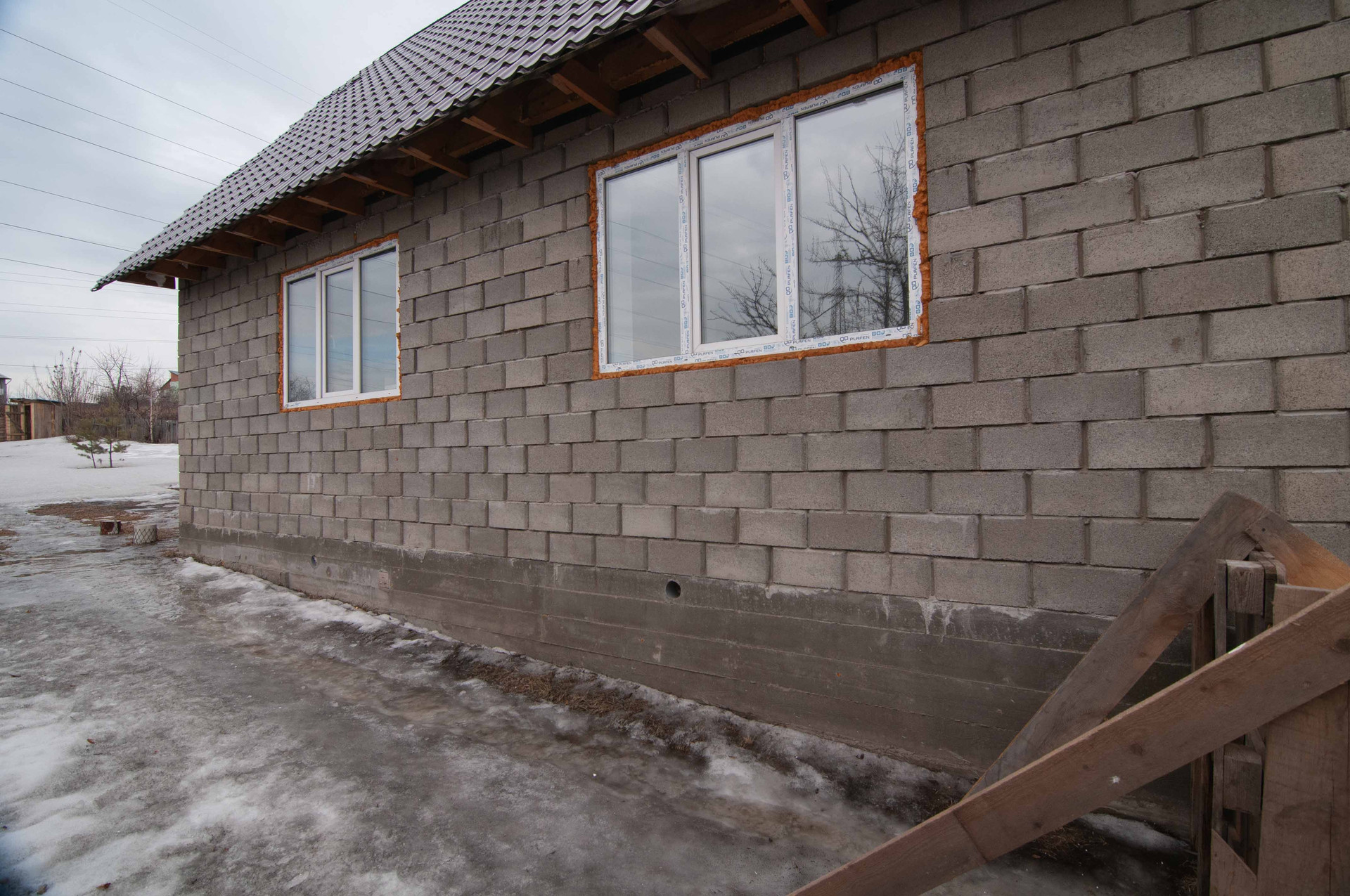Построен в 2023 году из теплоблока, на ленточном фундаменте.