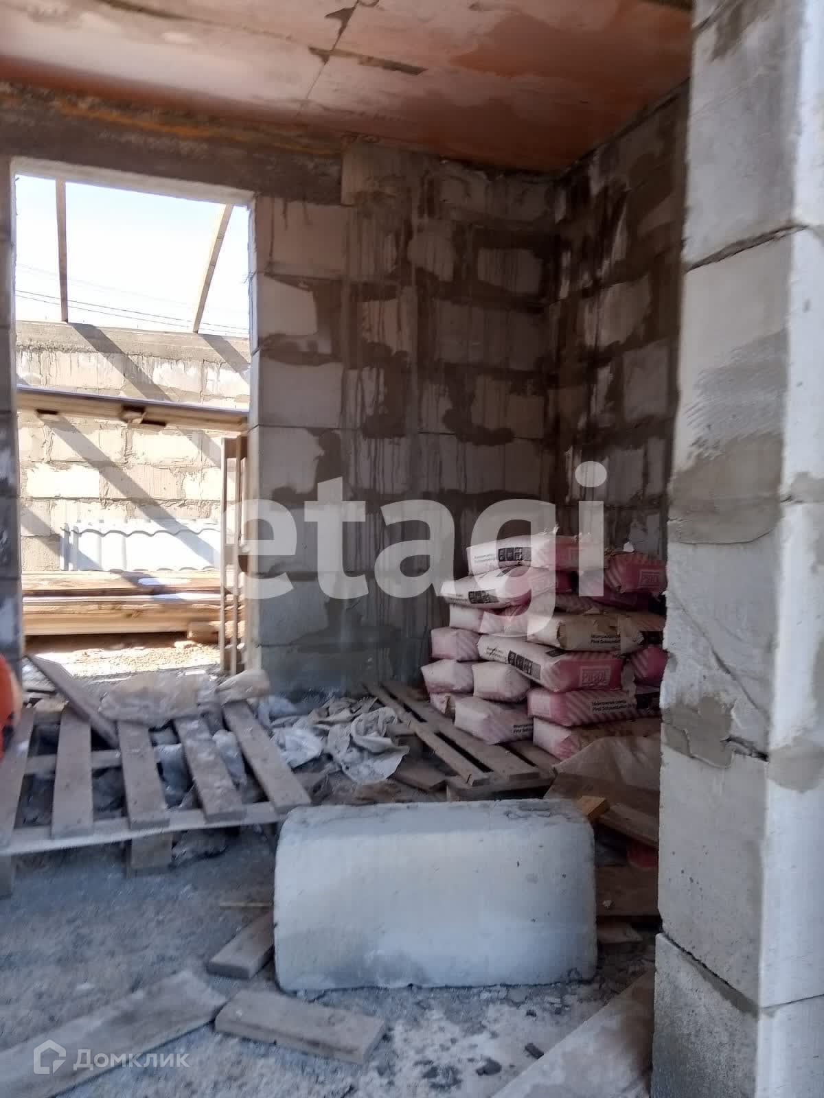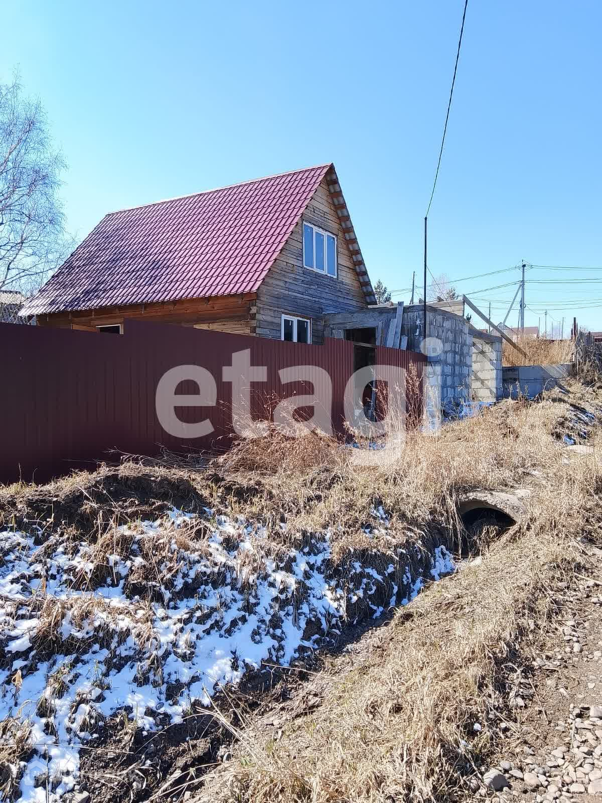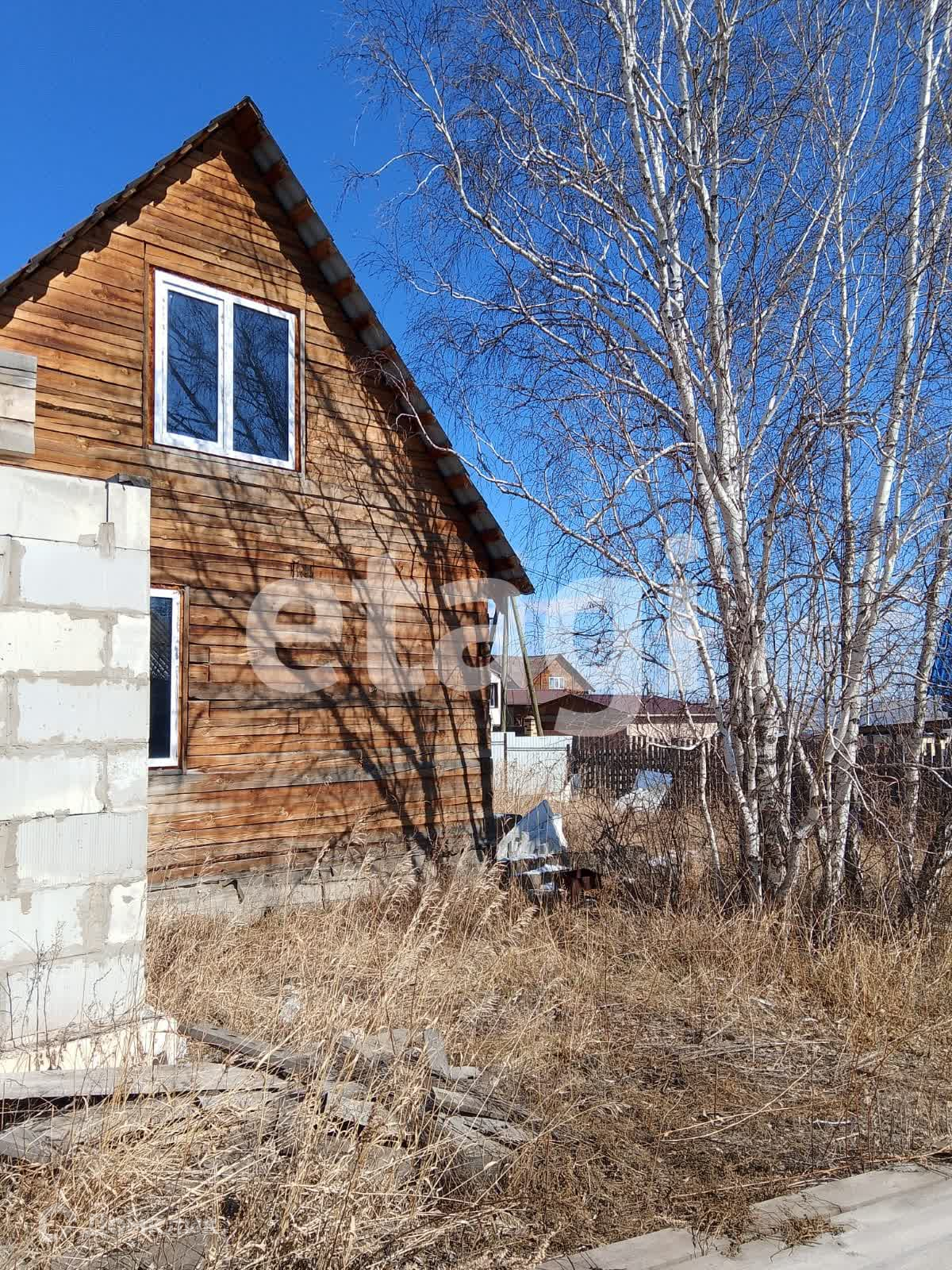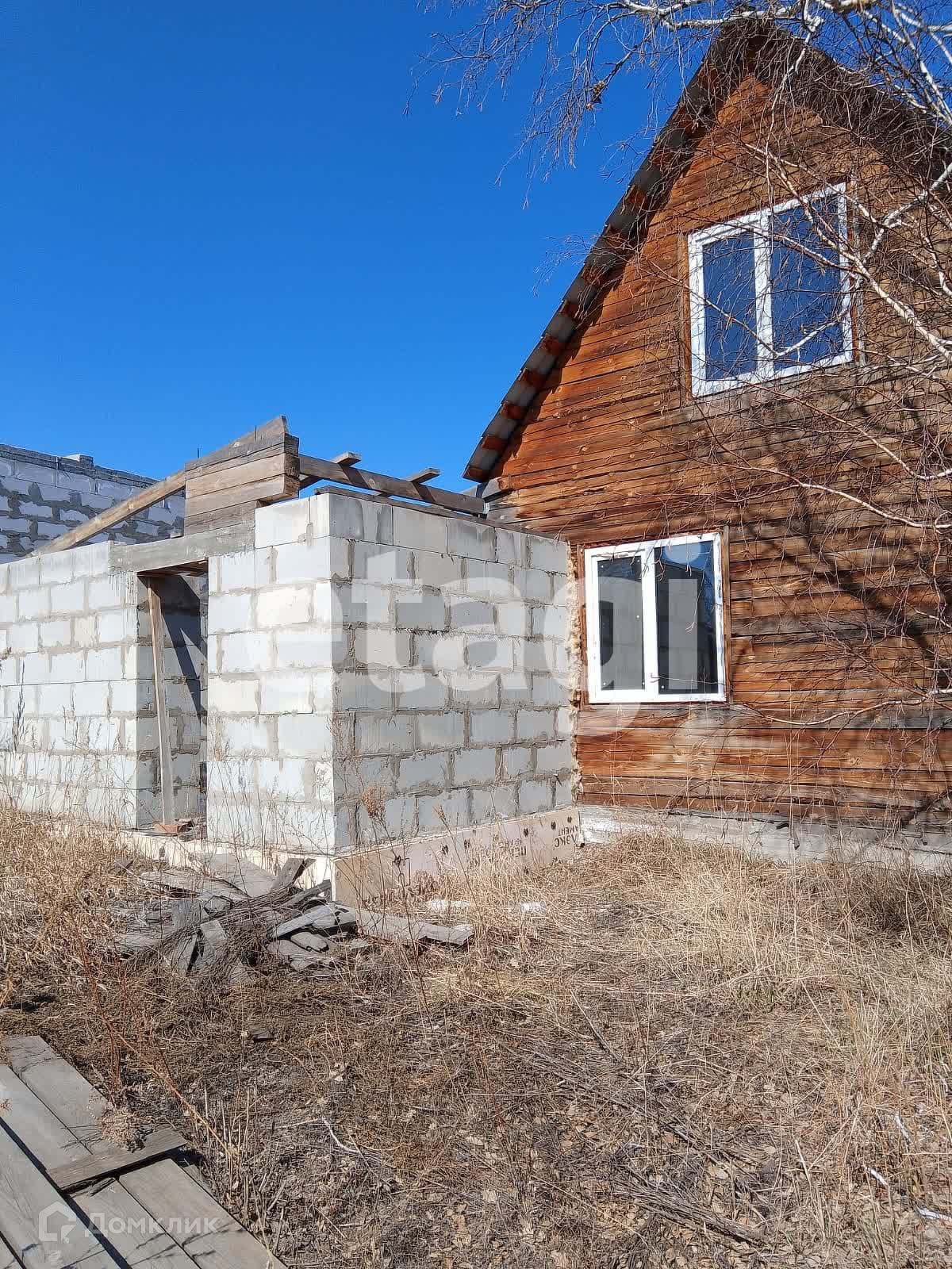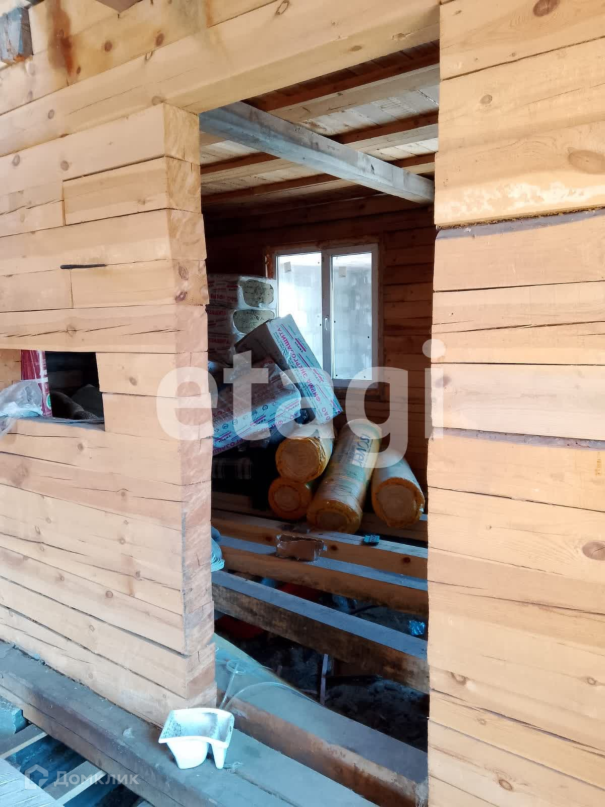 Дом стоит на добротном ленточном фундаменте, выложен из бруса, 2 этажа. Крыша двускатная с качественной кровлей. На дом закуплен утеплитель. К дому пристроен вместительный гараж с отделенным помещением для хранения и ремонта. Куплены откатные ворота -нужно лишь установить. Котельная внешняя, по проекту имеет выход их дома. Так же выложено помещение для сауны, но может использоваться для любых целей, например, хранения. На входе в дом установлена бетонная плита для беседки. На участке растут березы, открывается вид на город, огорожен профлистом.