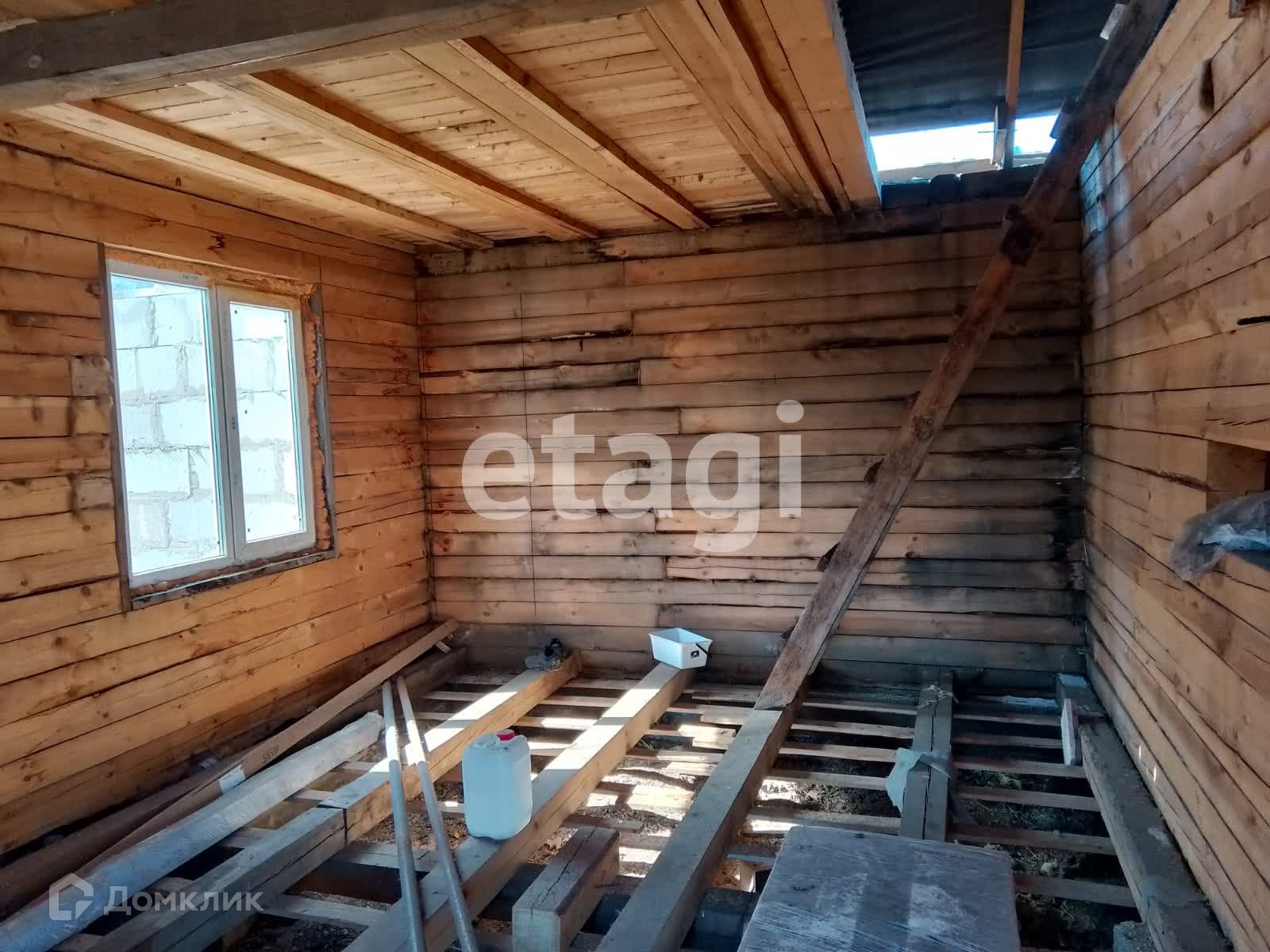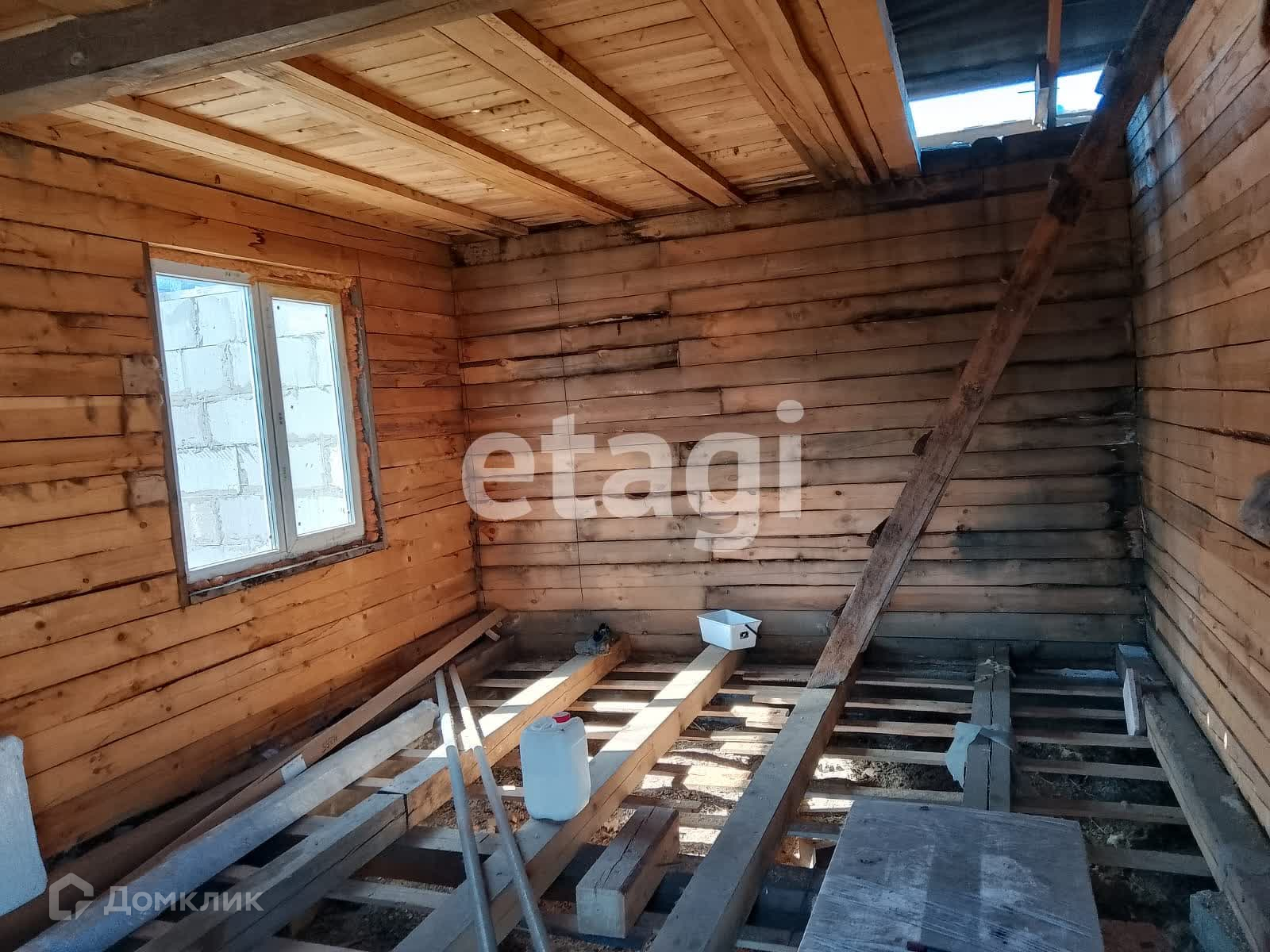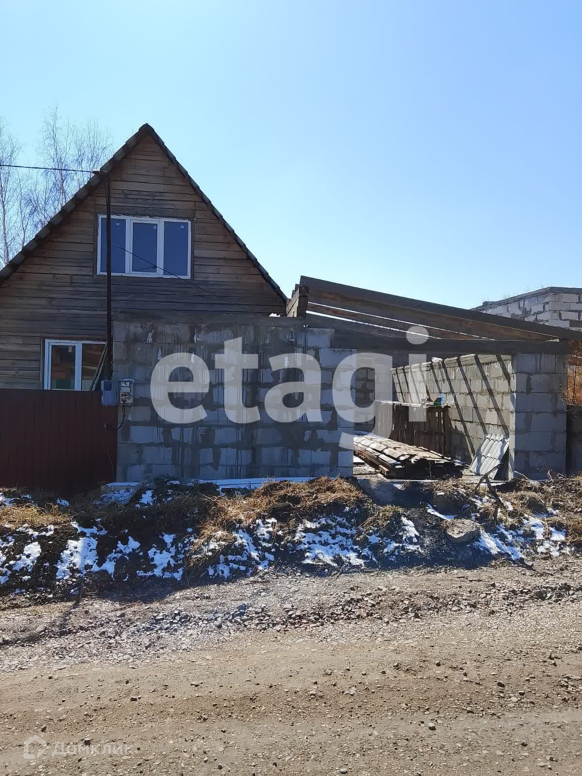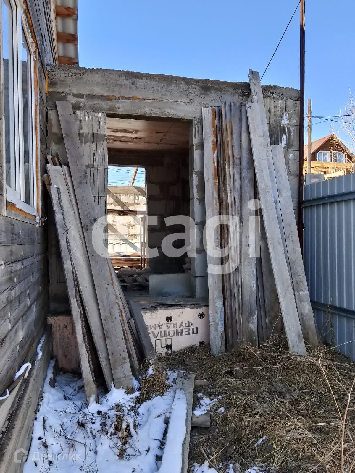 Дом стоит на добротном ленточном фундаменте, выложен из бруса, 2 этажа. Крыша двускатная с качественной кровлей. На дом закуплен утеплитель. К дому пристроен вместительный гараж с отделенным помещением для хранения и ремонта. Куплены откатные ворота -нужно лишь установить. Котельная внешняя, по проекту имеет выход их дома. Так же выложено помещение для сауны, но может использоваться для любых целей, например, хранения. На входе в дом установлена бетонная плита для беседки. На участке растут березы, открывается вид на город, огорожен профлистом.