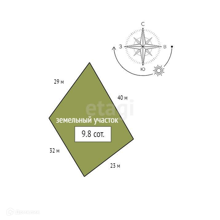 Площадь участка 9.8 сот.