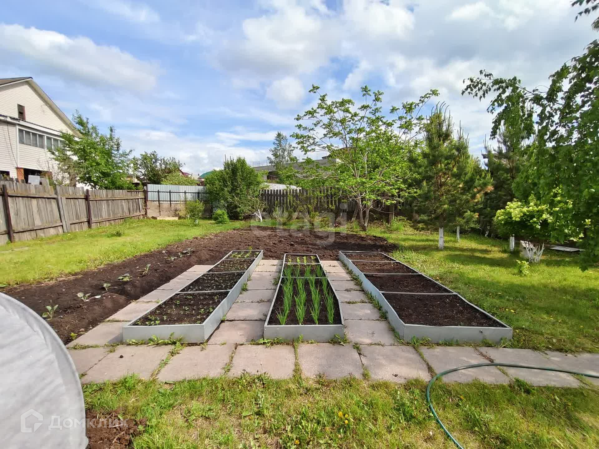 Во- вторых это удобный ровный обработанный с насаждениями участок,а перед гаражом выложена брусчатка. Хороший капитальный забор. В доме 2 кухни , а это значит дом прекрасно подходит большим семьям.
