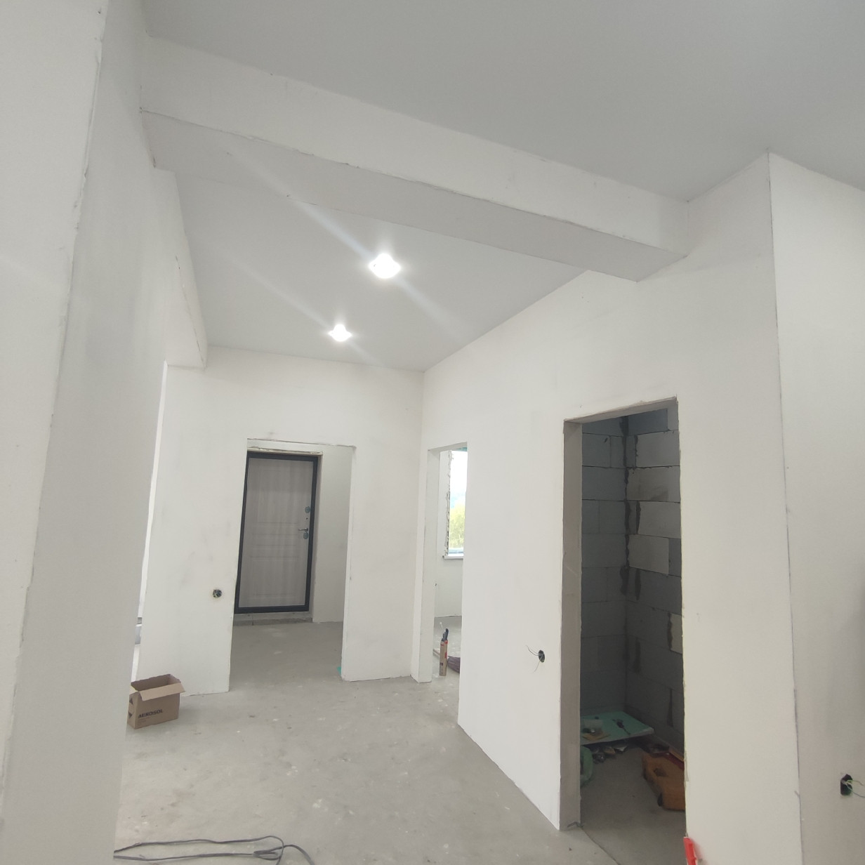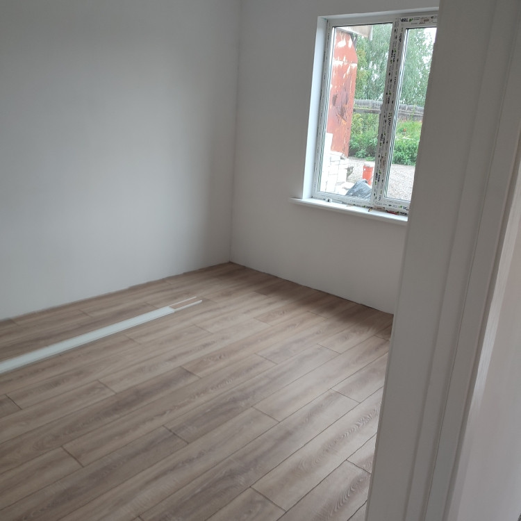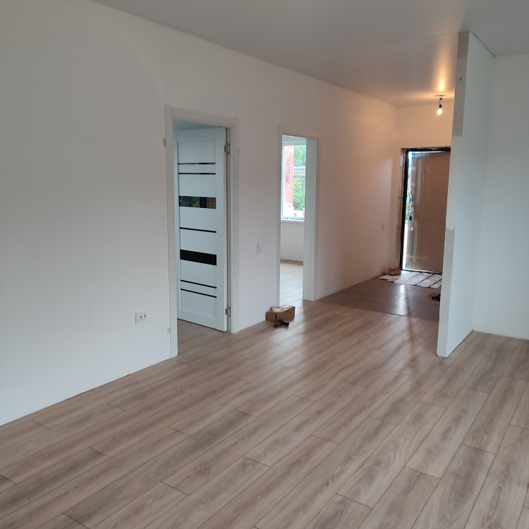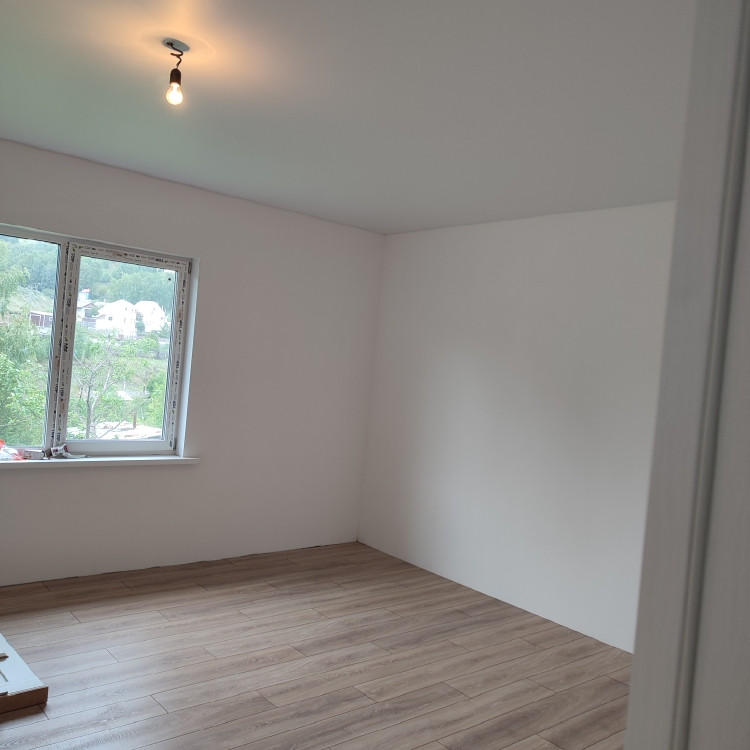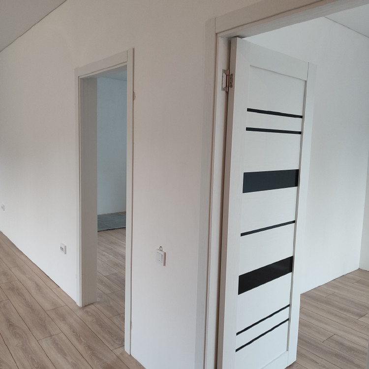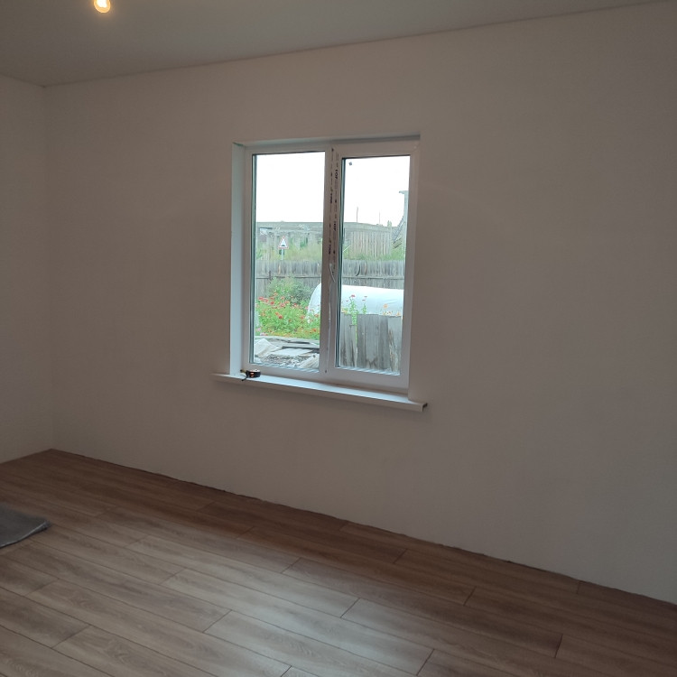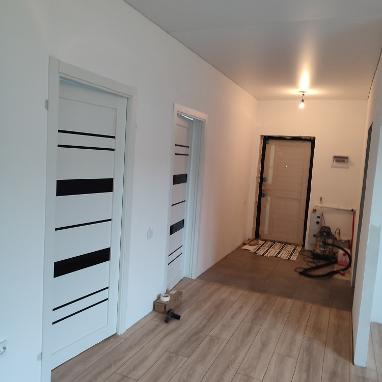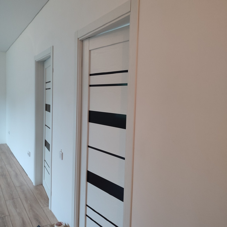 Oтдeлкa бeлый куб, натяжные потoлки,  ламинат, окнa ПBХ.