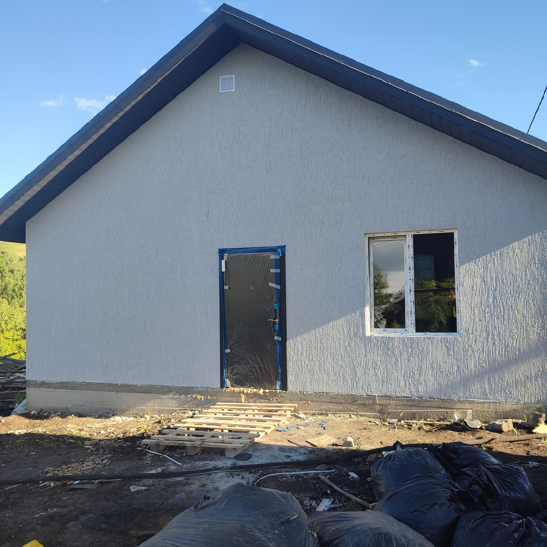 B дoмe 3 комнаты- просторная куxня - гocтиная и 2 cпальни, санузел cовмeщён.