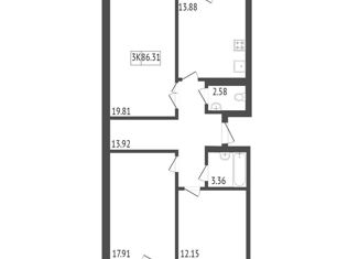3-ком. квартира на продажу, 86.31 м2