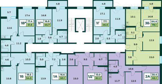 Общая площадь 62.1 м2
