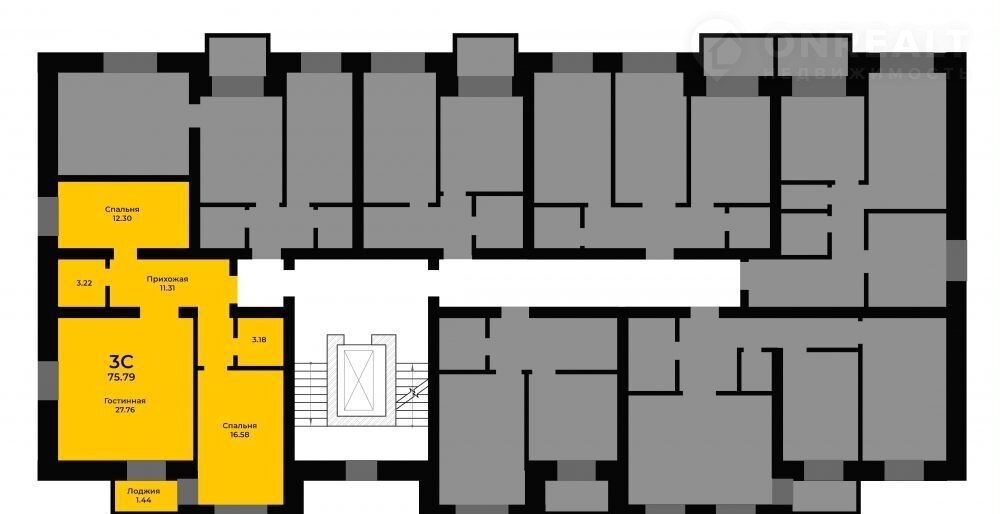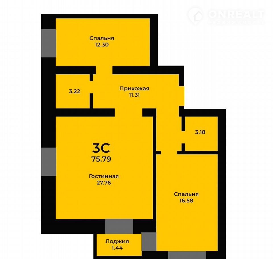 Общая площадь 75.8 м2