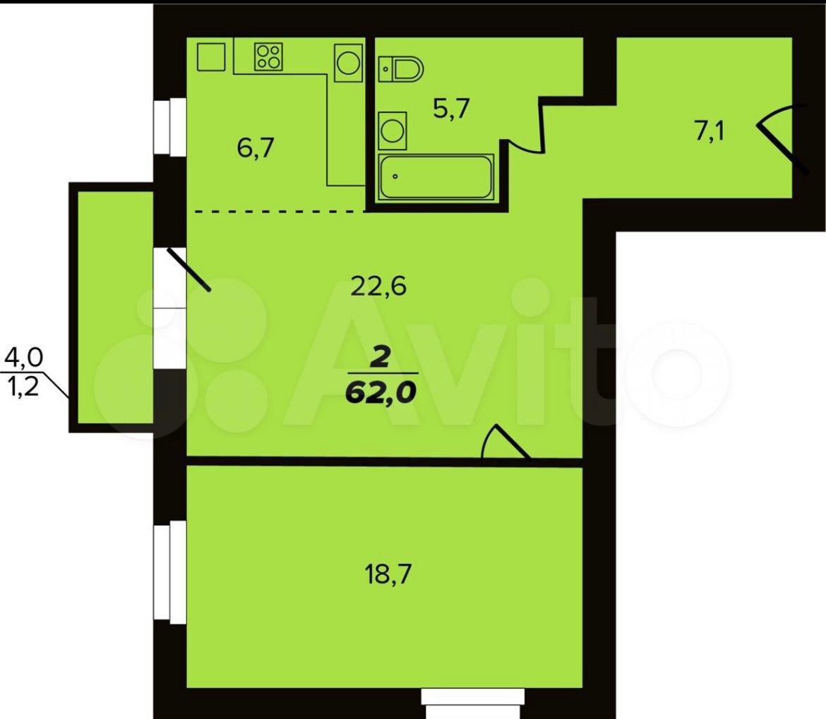 Общая площадь 62 м2