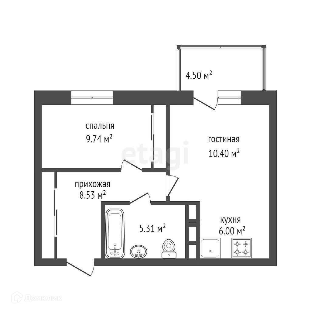 Общая площадь 40.7 м2