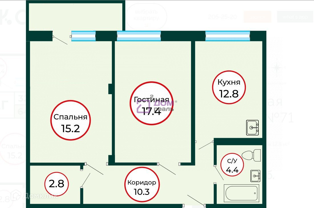 Общая площадь 64.3 м2
