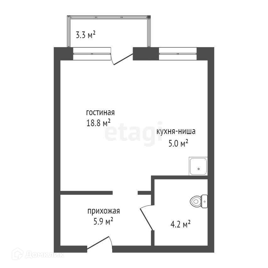 Общая площадь 33.7 м2