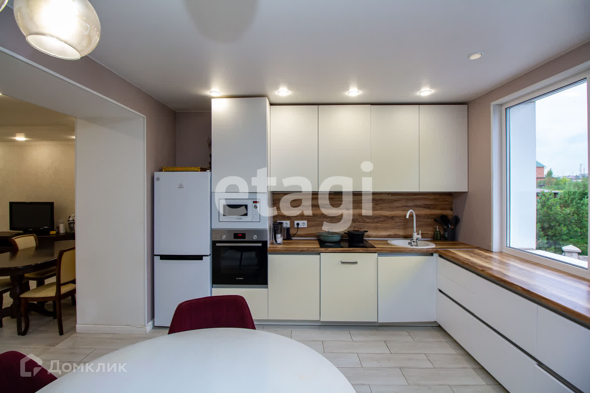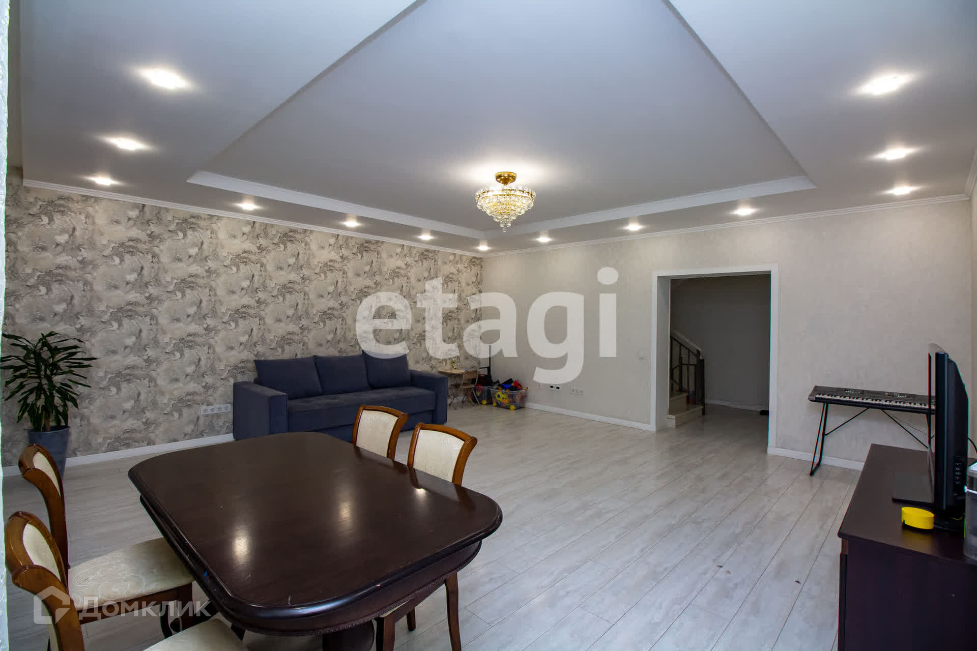 В доме есть погреб и помещение подготовленное под тренажерный зал (при желании можно оборудовать в баню, бильярдную или кинотеатр). Покрытие стен декоративная штукатурка, обои. Все санузлы отделаны современным кафелем. Новое сантехническое оборудование. Стильная современная кухня. Новая столовая группа, стол и стулья, свет разных уровней делают кухню современной и динамичной.