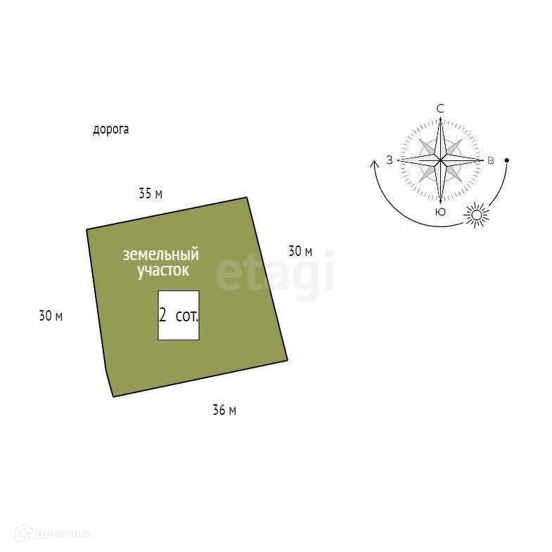 Площадь участка 2 сот.