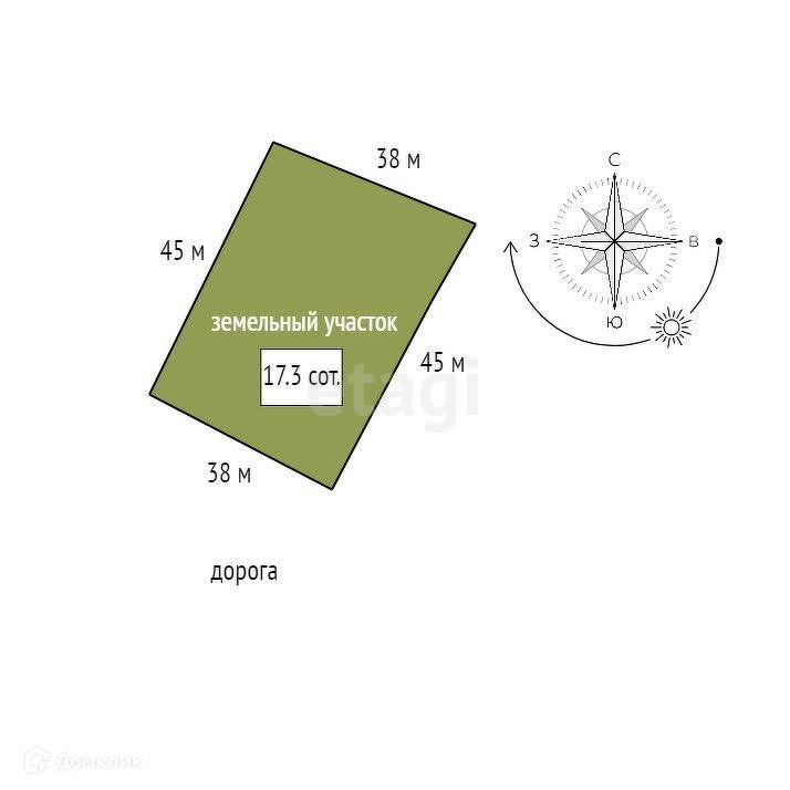 Площадь участка 17.3 сот.