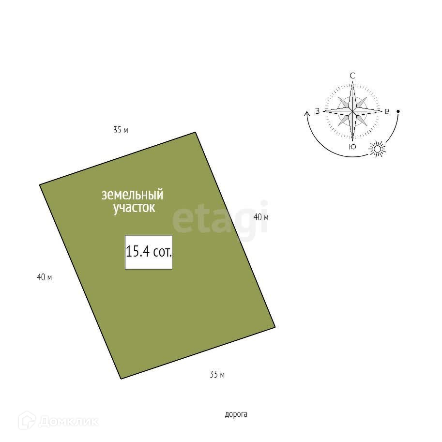 Площадь участка 15.4 сот.