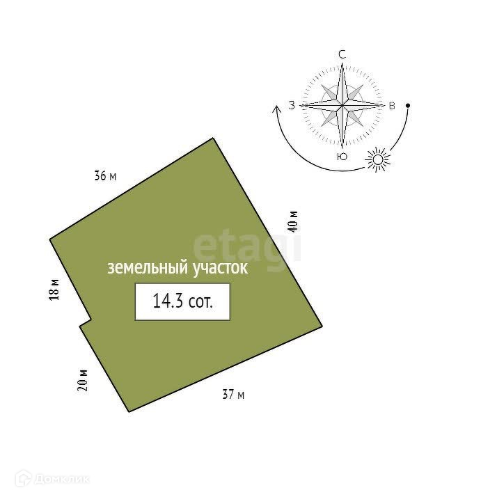 Площадь участка 14.3 сот.