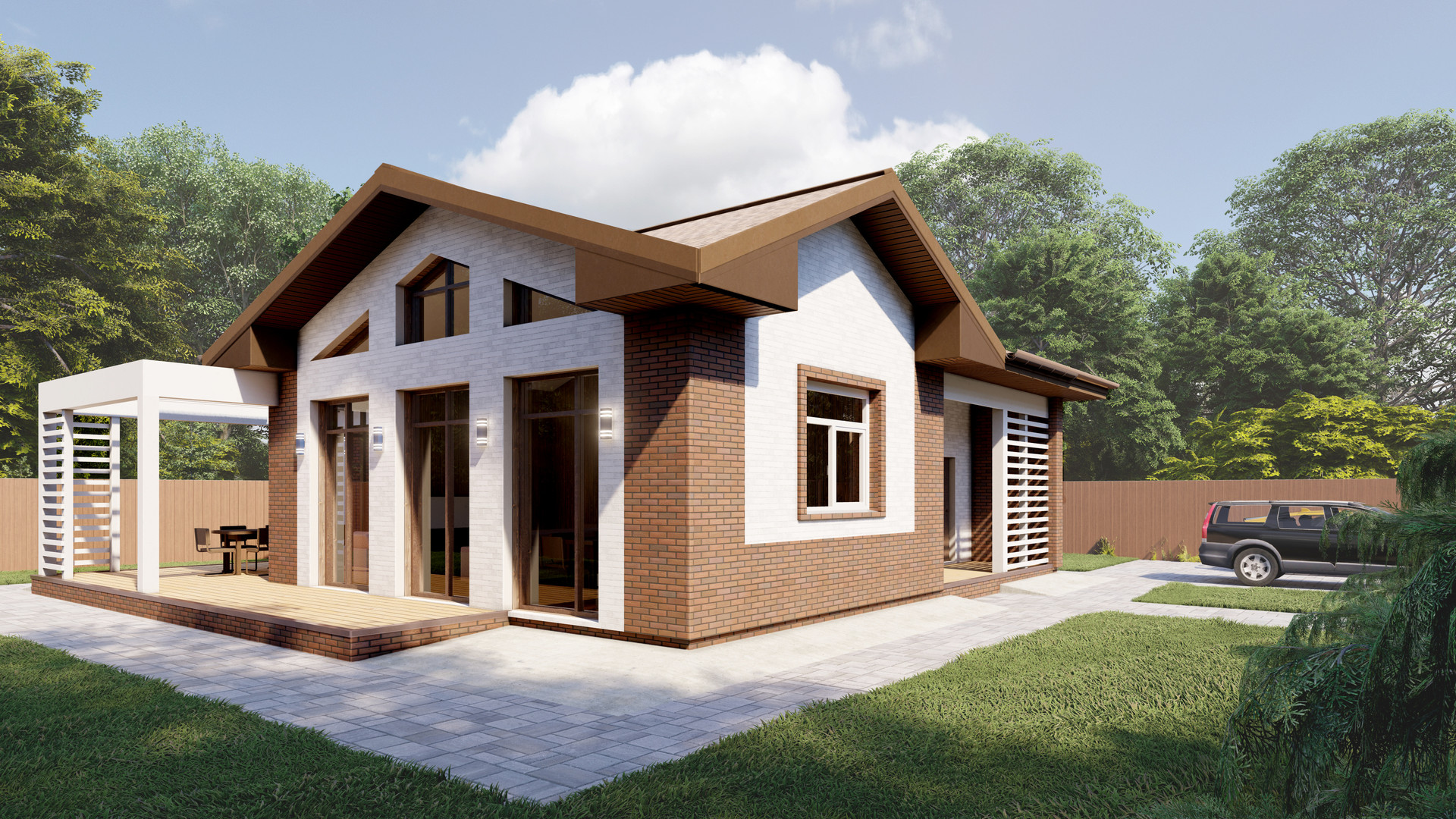 В стоимость входит: земляные работы, подведение инженерных сетей к дому, фундаментная монолитная плита, сборка коробки дома из газосиликатного блока, монтаж кровли, установка энергоэффективных окон, и входных дверей с терморазрывом.