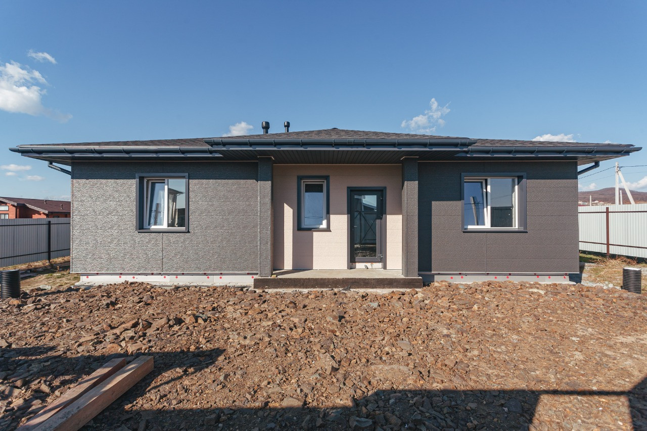 Дом площадью в 133м. обрел своё место на равнине у въезда в Соловей - Ключ, посёлок «Солнечный».
