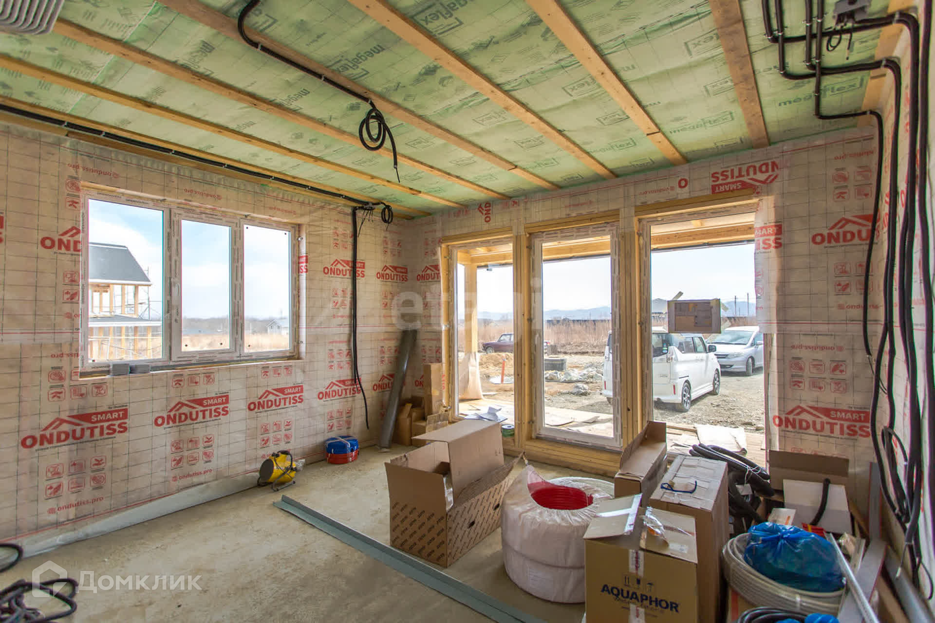 - Несущие стены - из доски камерной сушки толщиной 150мм (не нуждается в обработке антисептиком), толщина утепления (стен/перекрытия/кровли) 200мм (минвата Изовер)