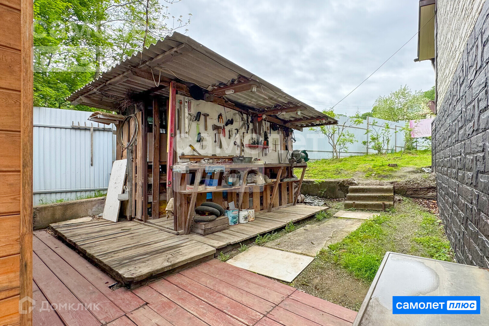 Дополнительно пристроена рабочая мастерская.Под домом в подвальном помещении имеется погреб для хранения продуктов (температурный режим соблюдается).