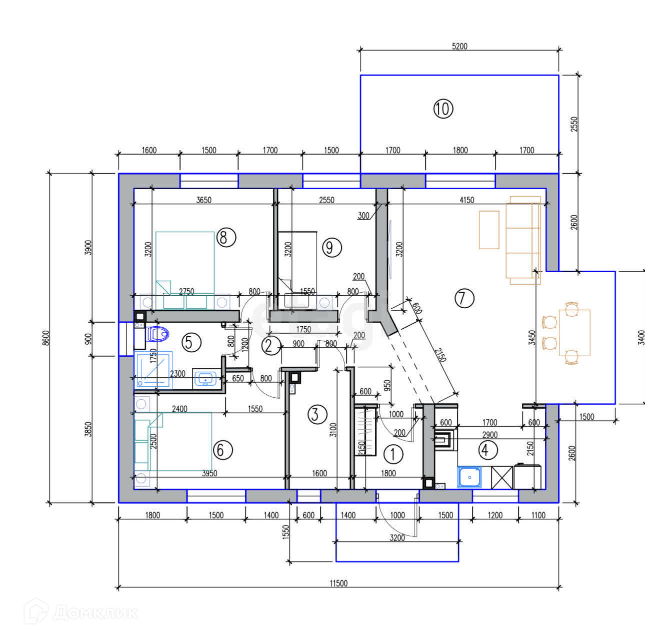 Общая площадь 86 м2