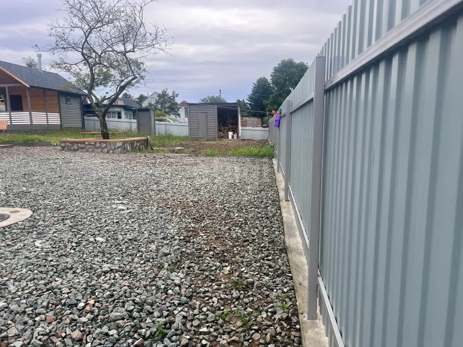 - забор с откатными воротами на ростверке