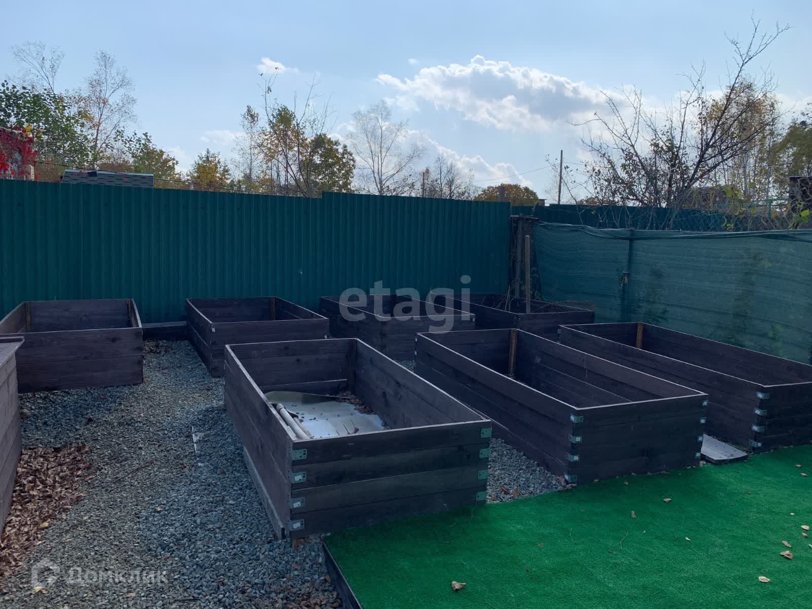 - выделенная зона для цветов с деревянными клумбами и клумбы для зелени