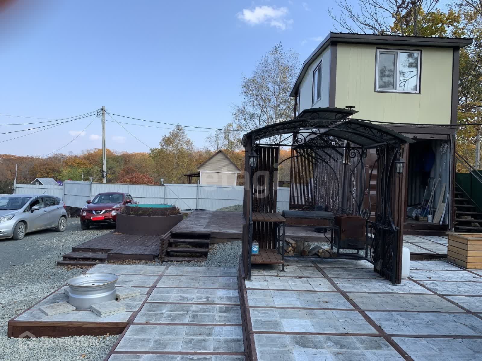 - выделена зона для мойки авто, парковка на 8 автомобилей и при этом очень удобный, правильный въезд на участок