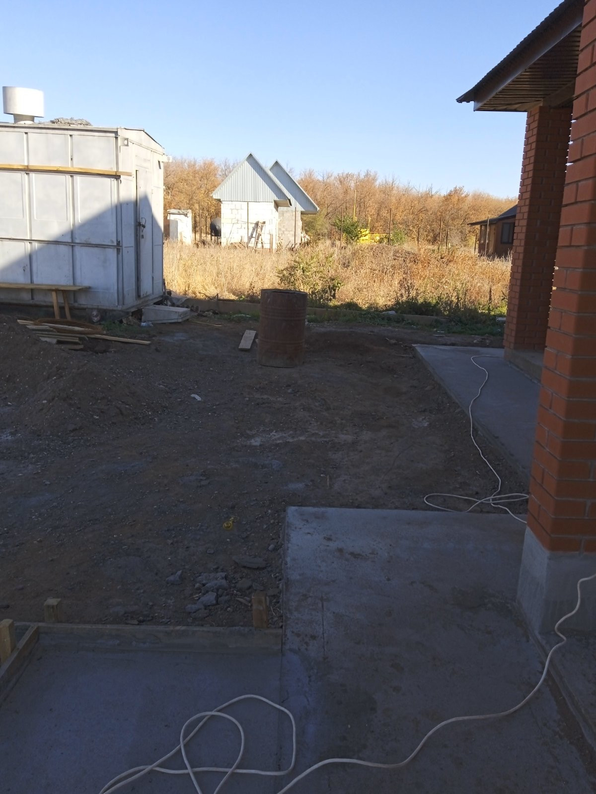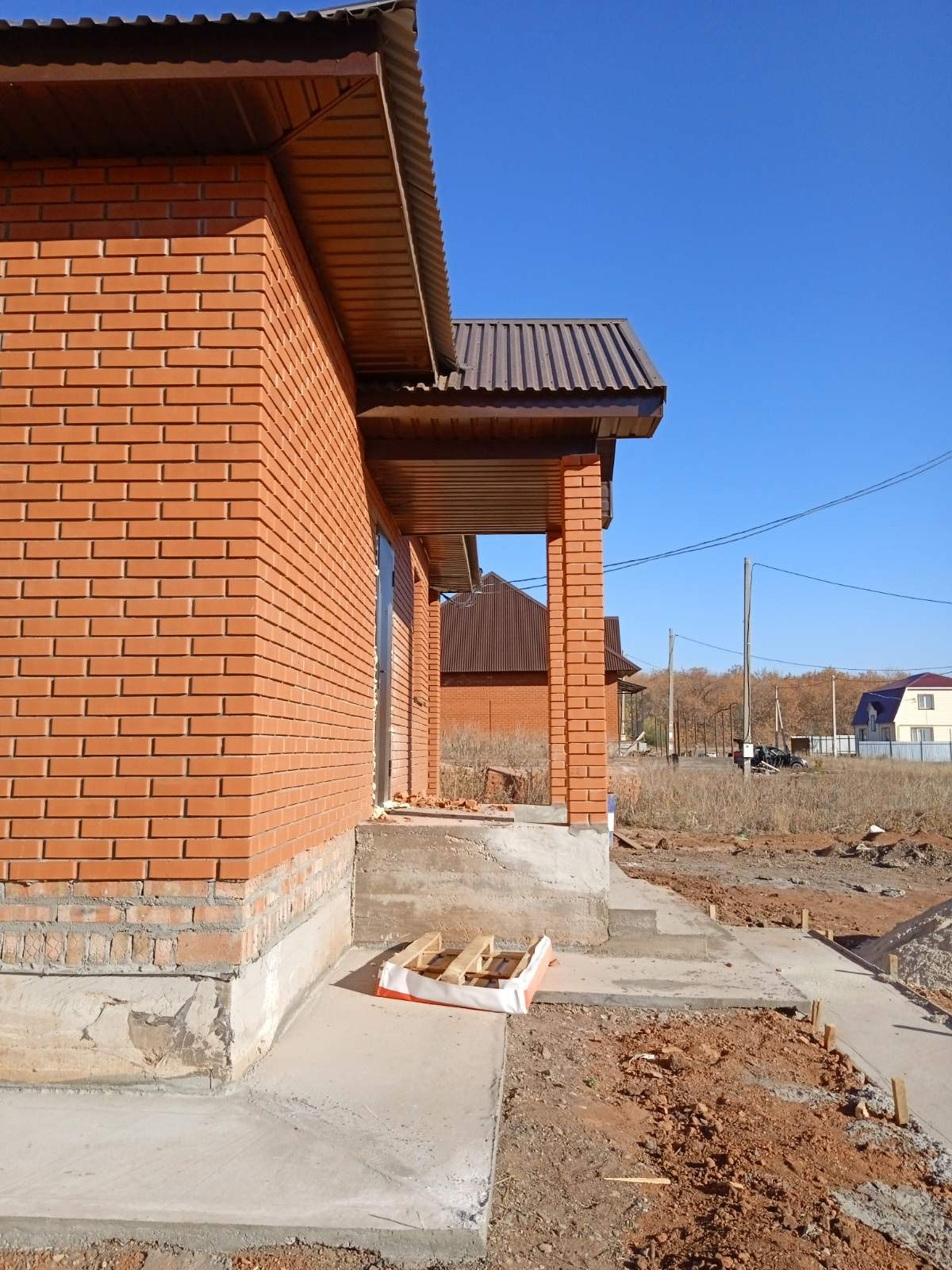 Дом из монолитного Арбалит облицован керамическим красным кирпичом. Очень теплый и экологически чистый. Квартиры изолированы друг от друга несущей стеной, слышимость минимальна. Своя водяная скважина.